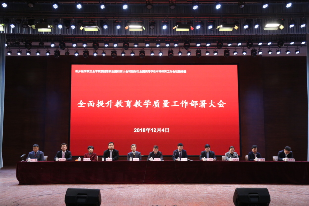 为贯彻落实全国教育大会精神和新时代全国高等学校本科教育工作会议精神,2018年12月4日下午,我校全面提升教育教学质量工作部署大会在闻德礼堂隆重召开。我校领导王志凯、杨捷、王金文、王彦杰、张钢、沈雁霞、毛兰芝、杜华贞、马波、王延生出席会议。会议由教务部主任袁磊主持。