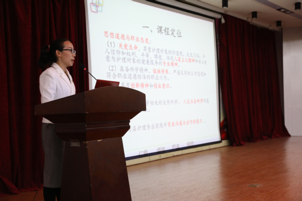 各参赛教师分别从课程目标及定位、课程设计、课程实施、课程评价等方面对其课程的建设和改革情况进行了阐述、展示,经过激烈的角逐,光明眼科学院李爽的《验光学》获得一等奖,临床学院衣志爽的《基于OBE理念的诊断学实验教学改革与探索》、护理学院侯艳飞的《内科护理学》、外语系孙静雨的《大学英语读写课程》获得二等奖,临床学院刘亚楠的《外科学总论实验课》、基础医学院郭珺的《病理学》、健康管理学院王田田的《营销策划》、外语系单翔燕的《医学英语》、护理学院王静的《护士人文修养》、基础医学院杨全中的《生物化学》、通识教育管理中心王红英的《思想道德修养与法律基础》获得三等奖,康复学院冯杨红的《康复功能评定学》等获得优秀奖。