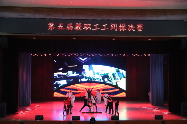 通过初赛选拔,共有10支队伍进入决赛。在决赛现场,广大教职工豪情满怀,激情洋溢,一支支色彩艳丽代表队构成一道道靓丽的风景。首先登场的是护理学院工会,老师们伴着音乐《那天的遇见》跳着优雅的舞姿,为我们展现出一个个动人的白天鹅;漂亮帅气的机关一工会,充满青春活力的表演,赢得了在场师生的阵阵掌声;第七个出场的是德馨书院工会,教师们伴随着动感的音乐节拍,活力四射、慷锵有力,大家以饱满的热情、统一的服装、整齐的动作、优美的舞姿和灿烂的笑容将自信、拼搏、团结、友爱传递给在场各位;最后出场的是体育教学部工会,老师们个个精神抖擞、意气风发、新颖变幻的阵型、青春动感的音乐、变化多样的队形、标准娴熟的动作,将工间操动作的力与美,太极、跆拳道的刚与柔展现的淋漓尽致,极具团体之美、运动之美,激情绽放健康和活力。现场观众被他们的默契配合所震撼,我们真真切切感受到了体育的魅力。整场比赛高潮迭起、精彩纷呈,每一套工间操都给人以惊喜,充分展示了三全人敢于创新、团结协作、积极进取的精神风貌。