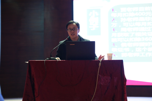 首先,王延生对个人所得税改革的目的、意义及申报要求进行了简要介绍,并指出“余生最懂你的是税务”;随后,财务部老师赵征从具体内容、扣除标准及相关注意事项对子女教育、继续教育、大病医疗、住房贷款利息或住房租金、赡养老人6项专项附加扣除进行了详细解读,并通过丰富的案例对抵扣条件进行具体问题具体分,并对专项附加扣除的申报方式及具体操作步骤进行了详细演示;接下来,赵征又将“全年一次性年终奖”和本次改革特色 “累积预扣法”的内容及计算方法给大家进行了详细解读。最后,财务部对广大教职工进行现场答疑,对大家提出的问题做出一一解答,培训会现场气氛热烈,受到广大教职工一致好评。