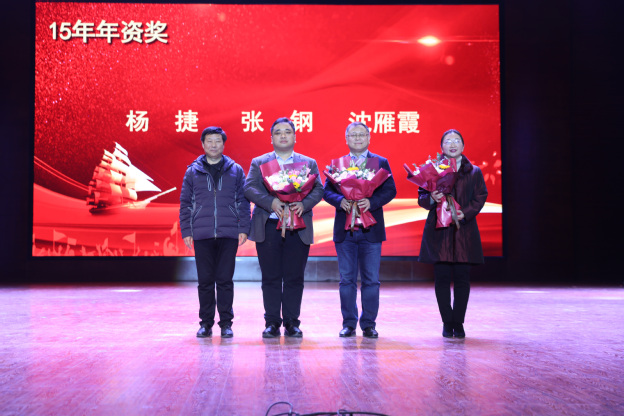 在精彩的节目中间穿插有颁奖、抽奖活动,把晚会气氛一次次推向高潮,大家在欢声笑语中增进了感情交流,进一步提高了学校凝聚力和向心力。学校主要领导分别为工会先进个人及工会先进集体、资产管理先进个人及先进集体、5年10年15年年资奖获奖职工和单位颁发获奖证书,送上鲜花表示祝贺。今年是第一次颁发15年年资奖,杨捷、张钢、沈雁霞三位学校领导获得此奖,杨捷院长发表感言:15年时间过的很快,从最初只有148名学生到现在2万余人,我为自己是三全人而自豪!15年有苦难、有汗水、有泪水,但因为有三全家人们的陪伴,我们收获更多的是幸福和快乐,祝福三全越来越好,祝福三全的家人们一切顺利!