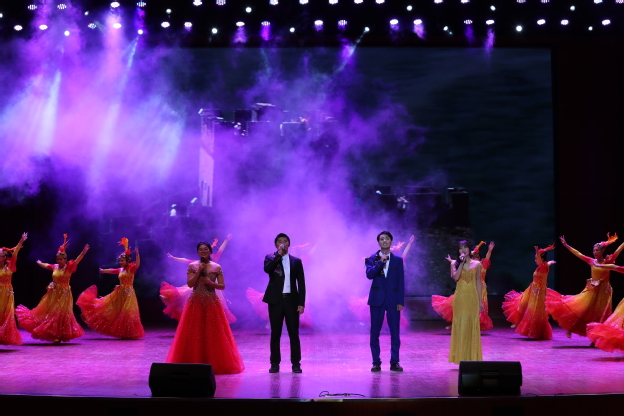 晚会在歌舞《国家》中圆满结束,校领导与全体演职人员合影留念。