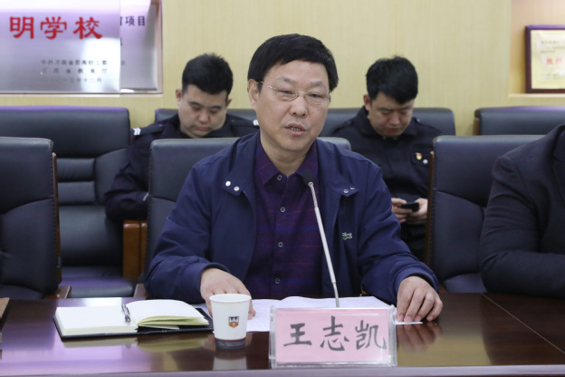 王志凯代表学校致欢迎辞,对考核组的到来表示热烈欢迎,对省公安厅、市公安局国保支队、市公安局国保支队长期以来对我校维稳安保工作的大力支持和悉心指导表示衷心感谢。同时,他从组织领导、完善规章制度、强化宣传教育、人防技防建设、情报信息交流、少数民族学生管理等方面详细汇报了我校2018年维稳安保工作的具体情况和做法。