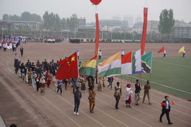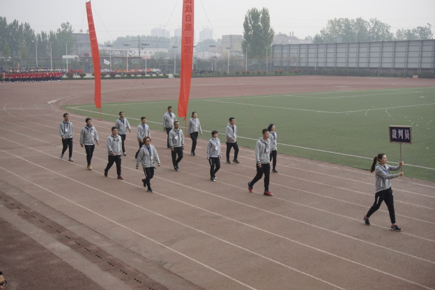 伴随着豪迈的《运动员进行曲》,国旗队、彩旗队、裁判员队、各书院以及工会代表队迈着慷慨稳健的步伐,喊着铿锵有力的口号依次入场。