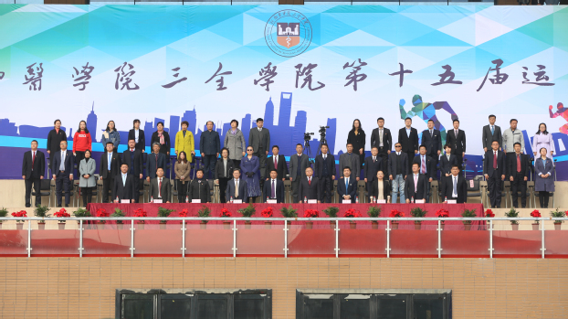 开幕式后,团体操表演随即拉开序幕。各个书院的队员们昂首挺胸,意气风发,分别呈现了带有各自书院文化特色的表演。流动不息的绚丽彩带交织成五角星、由绿变蓝的中国地图、徐徐升起的五星红旗、动态的人形树苗、数百名学生组成的红色十字,展现了各个书院对祖国的美好祝福和我校学子为医疗卫生事业奉献的决心,锐意创新的展示赢来了经久不息的掌声,高潮迭起的默契配合带给观众一场极为震撼的视觉盛宴。