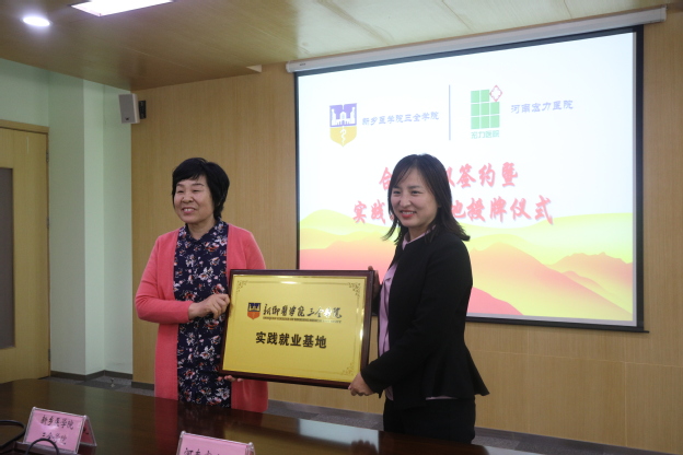 接着,毛兰芝向徐成娟授予“新乡医学院三全学院实践就业基地”牌匾,仪式在和谐融洽的气氛中圆满结束。