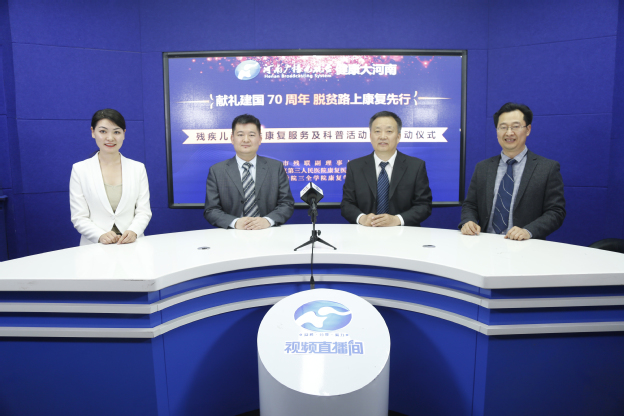 根据党的十九大关于“发展残疾人事业,加强残疾康复服务”的重要工作部署,我校与河南省直第三人民医院、郑州市残疾人联合会共同开展了“献礼建国70周年,脱贫路上康复先行”残疾儿童精准康复服务及科普活动。4月25日下午,河南广播电视台健康大河南栏目邀请了郑州市残联副理事长周长信、我校康复学院院长张东、河南省直第三人民医院康复医学科主任刘强等一同做客直播间分享“残疾儿童精准康复服务及科普活动”项目工作开展情况,并宣布项目正式启动。