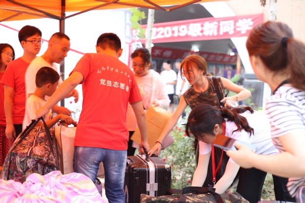 迎新期间,学校调派8辆大巴分别在郑州火车站、郑州高铁站、新乡火车站、新乡东高铁站等地方设立了迎新点,不间断接送学生及家长来校报到;校门口12辆迎新服务电瓶车来回运转,接送新生及家长到各书院。近千名学生志愿者,遍布校园各个角落,为新生提供报到咨询、手续办理、行李寄存、物品搬运以及维持交通秩序等服务。100余名党员教师以及150余名党员学生组建党员志愿者服务队,设置“党员志愿服务台”,开展迎新服务及高校宗教政策、校园安全防范等方面的宣讲。为确保交通顺畅,平原新区交警大队、执法局及祝楼乡派出所派出10名交警及治安警协助保卫科80余名保安在校门口维持交通秩序,开展消防安全排查工作。