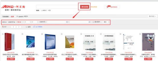 需要的图书直接加入购物车即可。系统还可根据图书的综合评分、出版时间、定价排序。也可按价格区间、出版时间段、重点图书进行筛选。