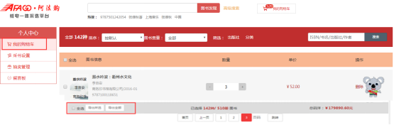 3.4、我的购物车:荐购的图书加入购物车中,图书馆老师即可查看,进行统一选购管理。
