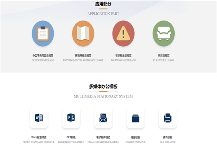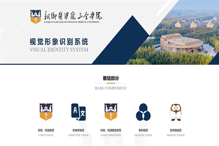 学校视觉形象识别系统从视觉基础、视觉应用及多媒体办公模板三方面设计制作了统一标识,并开发了常用视觉识别文件的下载功能。视觉基础部分包括校标、校徽、中英文标准字、标准色、辅助色、吉祥物及组合规范方式;视觉应用部分包括办公事物用品、环境导视、警示标示和办公家具;多媒体办公模板部分包括word、PPT、电子邮件、传真及海报模板等。视觉形象识别系统由校园文化建设办公室统一设计管理,适用于学校各单位文化建设。学校各单位在处理视觉形象时需依照视觉形象识别系统的相关规定执行,不得擅自更改。