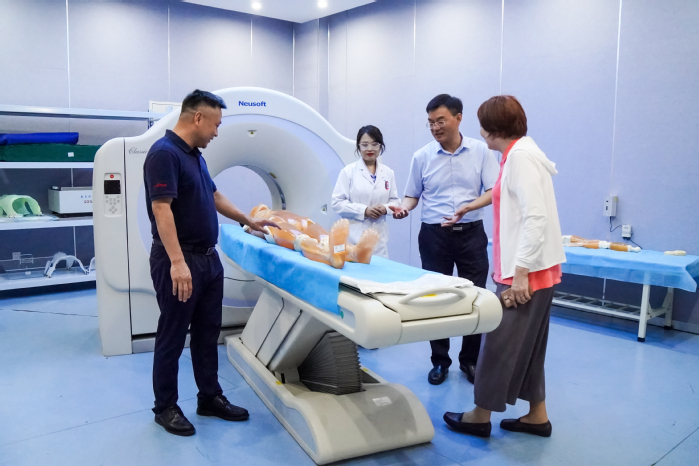 会上首先观看了学校发展宣传片,胡仕坤从学校整体办学情况出发,落实新时代岗位胜任力要求,探索新医科建设路径;“5+3”一体化全科医学人才培养模式实践;深化产教融合,推进政、产、学、研、用协同发展成效;落实立德树人根本任务,思想政治教育模式改革新途径等几个方面进行了汇报。胡仕坤表示:三全学院取得的发展成绩,离不开董事会的支持和全院师生员工的共同努力,也离不开像祝墡珠这样大师的指导和帮助,此次祝教授莅临考察,对我校来说,是一次十分难得的学习进步机会,恳请祝教授今后能够继续关心和支持学校的发展。交流会后胡仕坤陪同祝墡珠一起参观了解剖实验室、重点实验室、图书馆、护理学院、河南省医学考试中心、医学影像学院、康复医学院、口腔医学技术学院等地。
