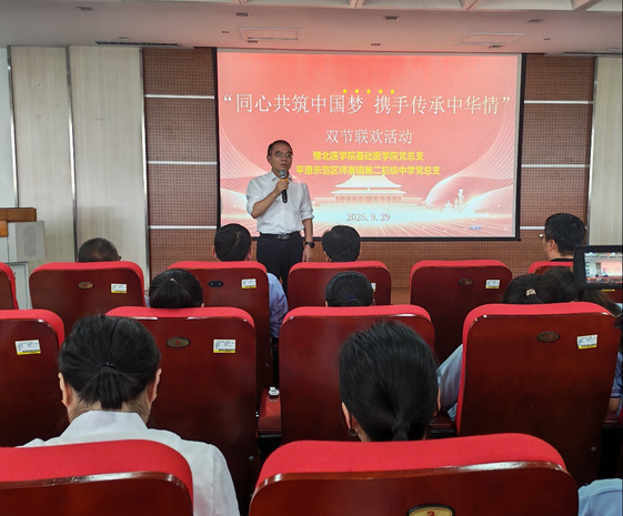 在国庆与中秋双节交汇之际,9月29下午,我校基础医学院党总支与师寨高级中学党支部携手成功举办“生命礼赞·家国团圆”双节联欢活动。此次活动以党建为引领,不仅是一场节日的欢庆,更是一堂生动的爱国主义教育与生命教育实践课,在中学生心中深植了爱国的“红色基因”与敬畏生命的“医学种子”。我校党委副书记杨国平、副校长薛宏,基础医学院师生代表及师寨第二高级中学师生代表齐聚一堂,共襄盛举。