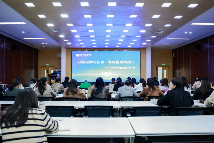 10 月 13 日下午,护理学院联合人事处,在行政楼三楼学术报告厅举办“以赛促教启新思,课程提质共前行”主题教学沙龙。护理学院院长薛松梅主持,教师发展中心专家马振江、孙银平教授莅临指导,全院各兄弟院系教师及护理学院全体教师参会。