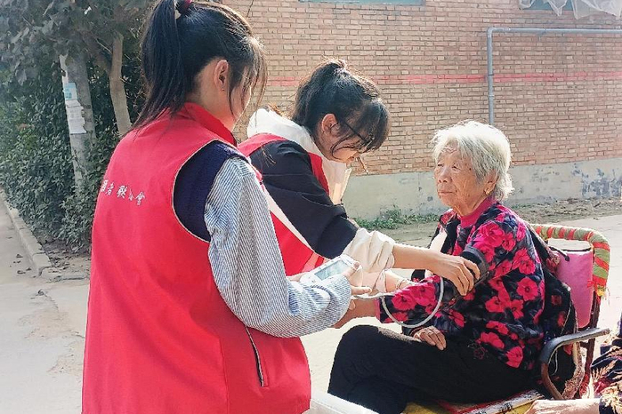 10月21日,羲和书院志愿服务先锋队走进老庄村开展基层健康服务活动,以专业素养与暖心行动,为村民健康筑起“防护网”。活动现场,志愿者两人一组、分工协作,有序为村民进行血压、血糖基础检查,细致询问每位村民日常身体状况与既往病史,结合检查数据量身定制饮食、作息等科学健康建议;同时通过通俗化讲解、发放宣传手册等形式,向村民普及高血压、糖尿病等常见病的预防知识,助力提升村民健康意识。此次活动不仅为老庄村村民送去了实用的健康服务,更让志愿者们在基层实践中锤炼了医术、厚植了仁心,以专业力量为乡村民生福祉贡献青春力量。