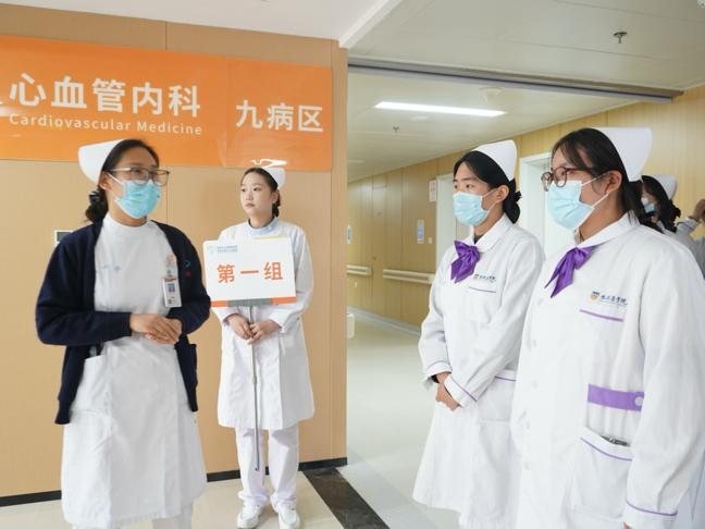 经验分享结束后,287名新生带队教师分组深入临床一线科室,开启流动课堂”实践学习。在心血管内科,同学们沿护理“黄金动线”了解病房布局、智慧护士站应用、监护设备原理与治疗车管理,切身感受“以患者为中心”的护理理念;在心血管外科,无菌换药室与康复指导区的科学布局,展现了心脏外科护理的专业严谨;在CSICU/TICU病房,各类监护设备织就“生命天网”,让“急危重症护理中枢”具象可感;在急诊科,抢救、留观、清创区域高效联动,设备布点科学精准,处处体现着急诊护理“与时间赛跑”的职业逻辑。