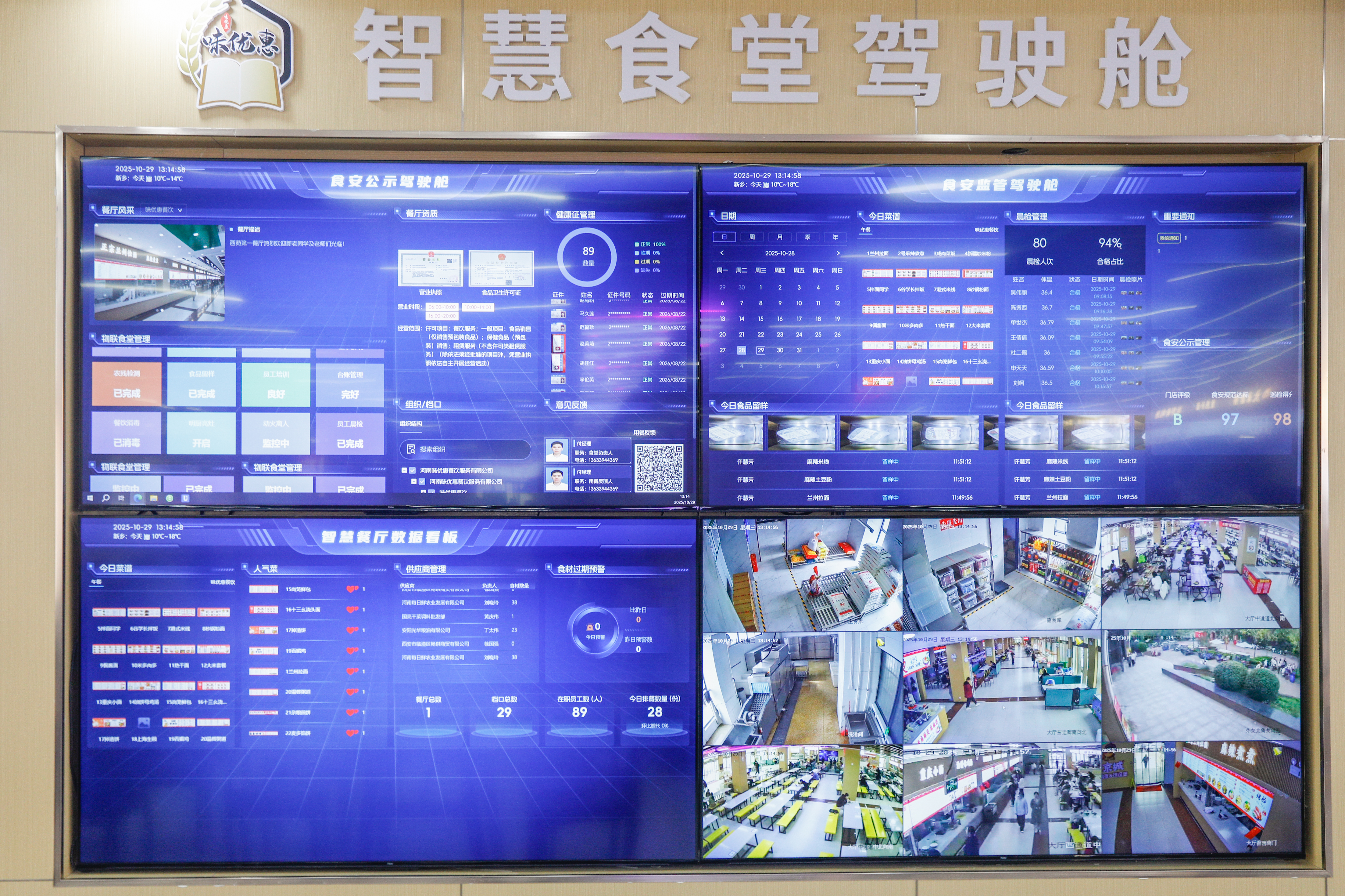 这块被师生亲切称为“食堂驾驶舱”的智慧大屏,就像食堂的“数字心脏”。在这里,不仅各家餐饮公司的食品经营许可证、营业执照一目了然,农残检测、行为抓拍,乃至每位后厨工作人员的健康状况都清晰可查。曾经“藏在幕后”的信息,如今成了师生们看得见、读得懂的安心保障。