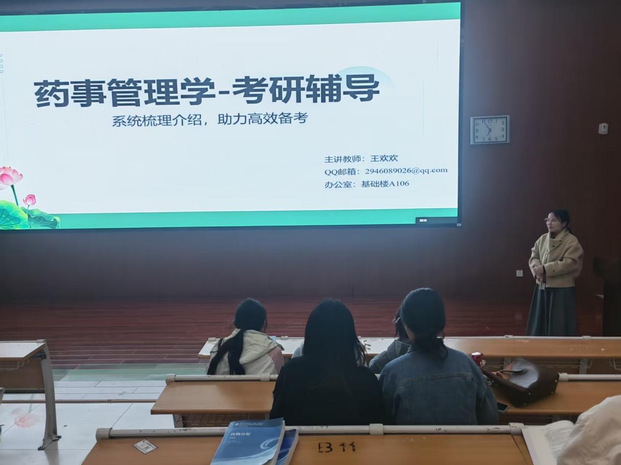 本次系列辅导于10月17日至24日陆续开展,涵盖天然药物化学、药剂学、药物分析、药理学、药事管理学及药物化学等核心课程。各学科优秀教师围绕考研大纲,系统梳理知识体系,聚焦高频考点,结合历年真题深入解析命题规律与答题策略。例如,周小丽老师围绕天然药物化学的结构与鉴定展开精讲;杨金昌老师重点讲解药剂学的剂型设计与工艺控制;杜雪艳老师通过思维导图串联药物分析知识框架;赵明明老师则强化药理学的逻辑链条与综合应用能力;王欢欢老师系统阐释药事管理学的制度主线与法规要点;王钰老师针对药物化学的题型特点进行冲刺归纳。每场培训均设置了基础夯实、强化突破与冲刺提升三阶段复习计划,引导学生合理规划时间、优化备考节奏,全面提升复习的针对性与有效性。