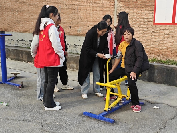 10月26日上午,德馨书院青年志愿者分会的20名学生走进祝楼乡新庄村,开展“情暖金秋,健康相伴”志愿服务活动。同学们分为两组,用所学知识服务村民:一组为老人测量血压,耐心讲解日常保健常识;另一组走进村巷,现场演示“七步洗手法”,宣传基础卫生知识。尽管学生的专业能力尚浅,但他们亲切的态度、细致的讲解,赢得了老人们连连称赞。一位参与活动的志愿者说:“我们做的不多,但能看到爷爷奶奶脸上的笑容,就觉得特别值得。”