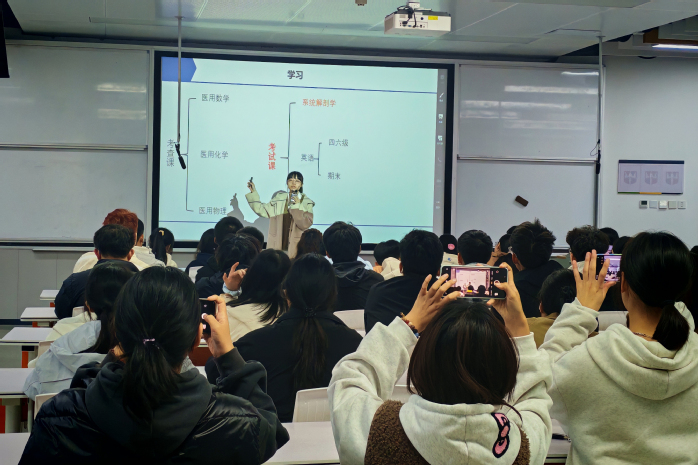 “三阶护航”首阶活动之学霸分享会。2024级临床医学专业优秀学姐王恩彤,帮助全体新生破解大学学习“入门难”问题,用“过来人”的经验为新生扫清适应障碍。她结合自身经历,既梳理本专业课程特点,又提炼出跨专业适用的学习逻辑,并重点强调“课前预习划重点、课堂专注抓核心、课后复习建框架”的闭环模式,帮助新生快速掌握大学学习核心方法。