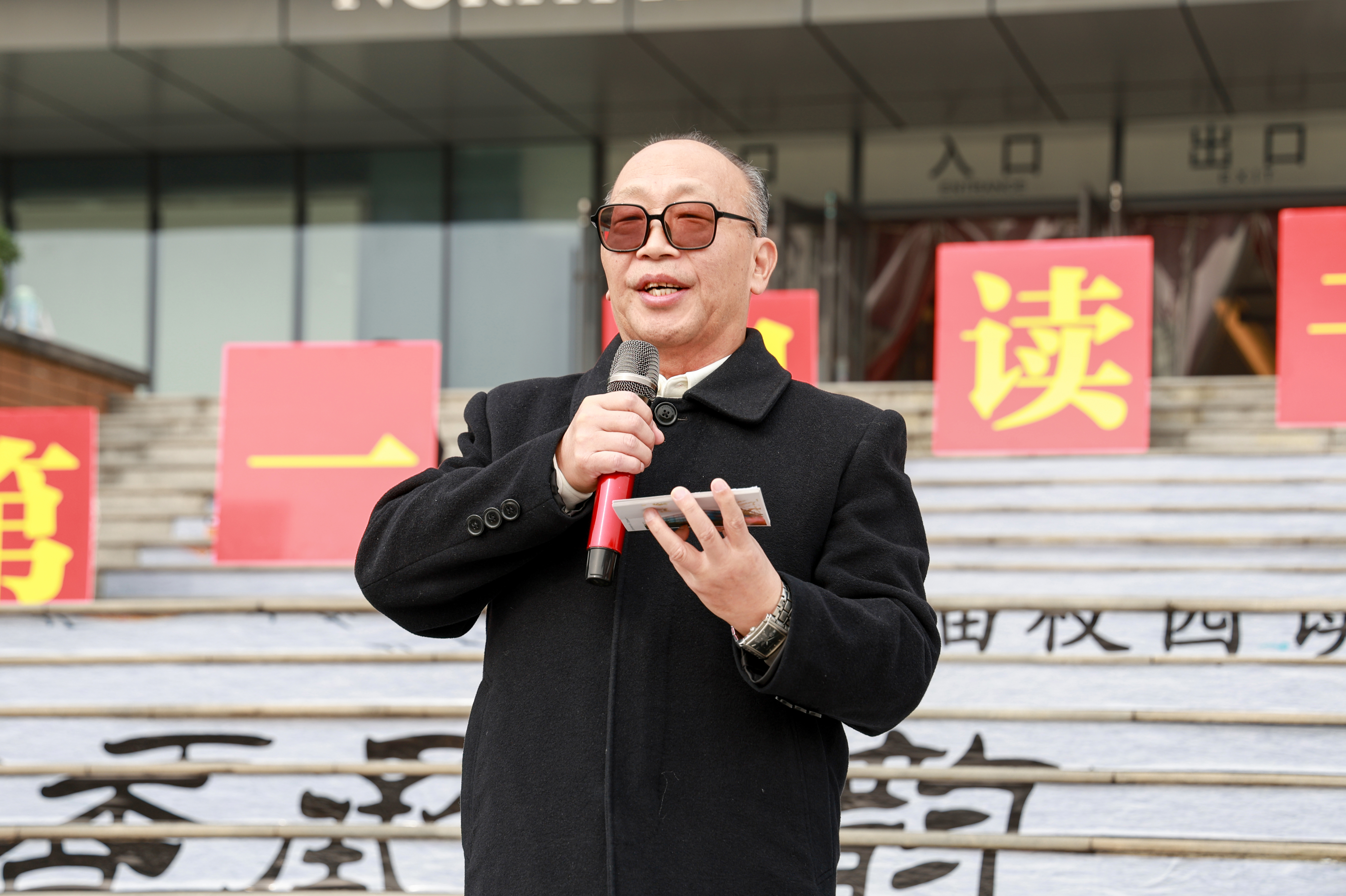 李琼致开幕辞。她指出,本届读书月主题墨卷含香承雅韵,书声明志赴新程”,既承载着历史沉淀,也寄托着未来期许,希望全体师生踊跃参加,通过阅读赓续文脉、坚定文化自信,凝聚迈向新征程的磅礴力量。同时,她提出三点希望:一是希望图书馆坚持守正创新,打造文化育人新高地,坚守“立德树人”使命,努力建设滋养心灵、涵养学术的精神家园,为学校的高质量发展提供坚实的文化支撑;二是希望同学们以书为友,涵养终身阅读品格,让阅读成为习惯,既要精研专业,也要博览群书,成长为既具专业深度又有人文温度的新时代栋梁;三是希望广大师生以书为媒,携手营造“爱读书、读好书、善读书”的校园文化生态,为学校高质量发展注入持久的文化动力。