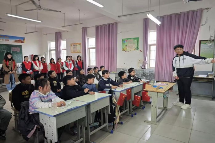 10月9日,志愿者们走进姚村学校,开展“童心向国,礼赞华诞”主题教育活动。通过讲述新中国成立的峥嵘岁月,引导孩子们感悟幸福生活的来之不易。活动现场,志愿者带领小学生共绘“我爱祖国”主题手抄报、书写祝福寄语,齐声高唱《红星闪闪》,以寓教于乐的方式播撒爱国种子,传承红色精神。