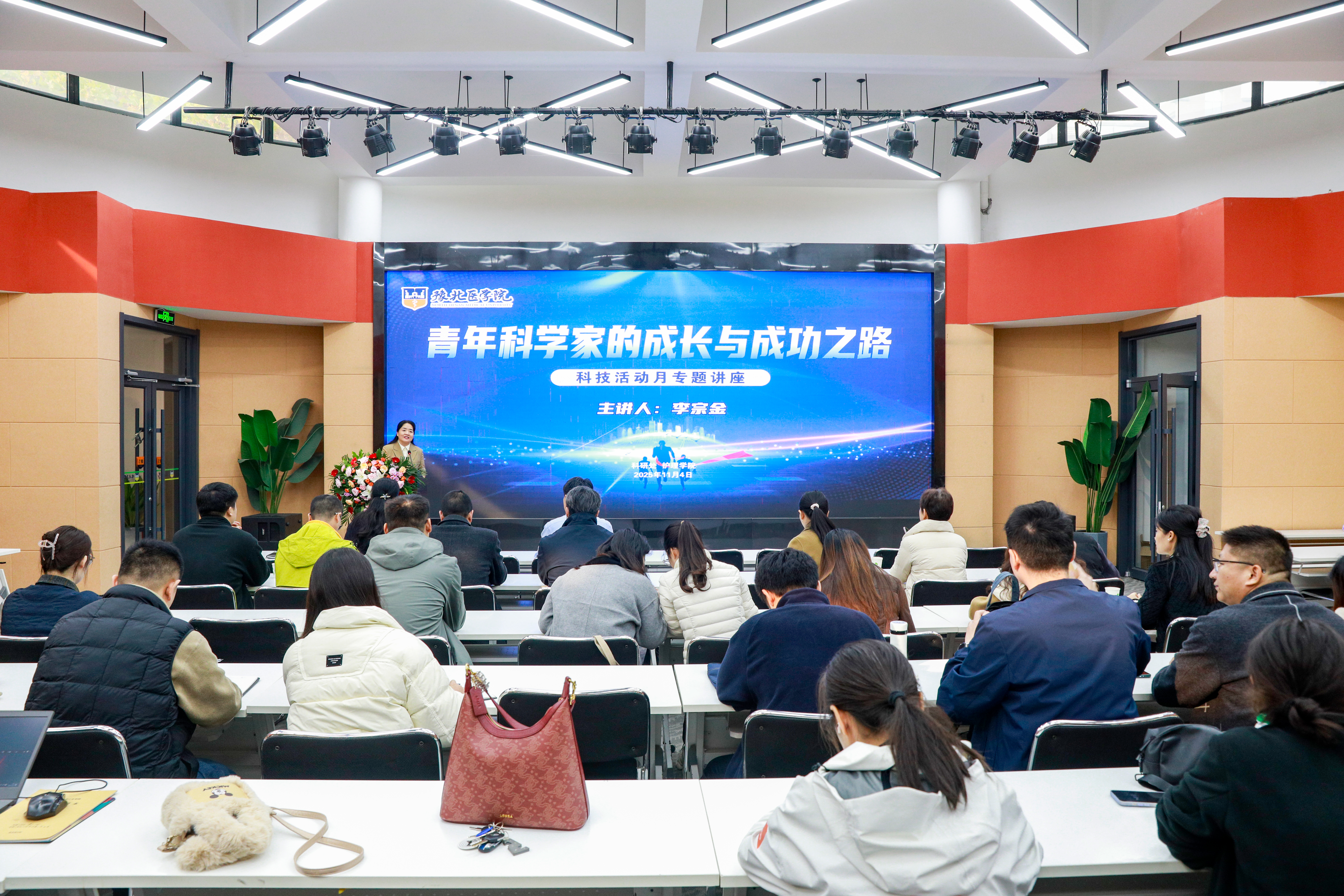 11月4日上午,我校科技活动月首场专题报告会在智行书院报告厅举行。南开大学医学院李宗金教授受邀作题为《青年科学家的成长与成功之路》的专题报告。学校各院部负责人、科研秘书及教师代表共计100余人聆听报告,由科研处处长靳瑞霞主持。