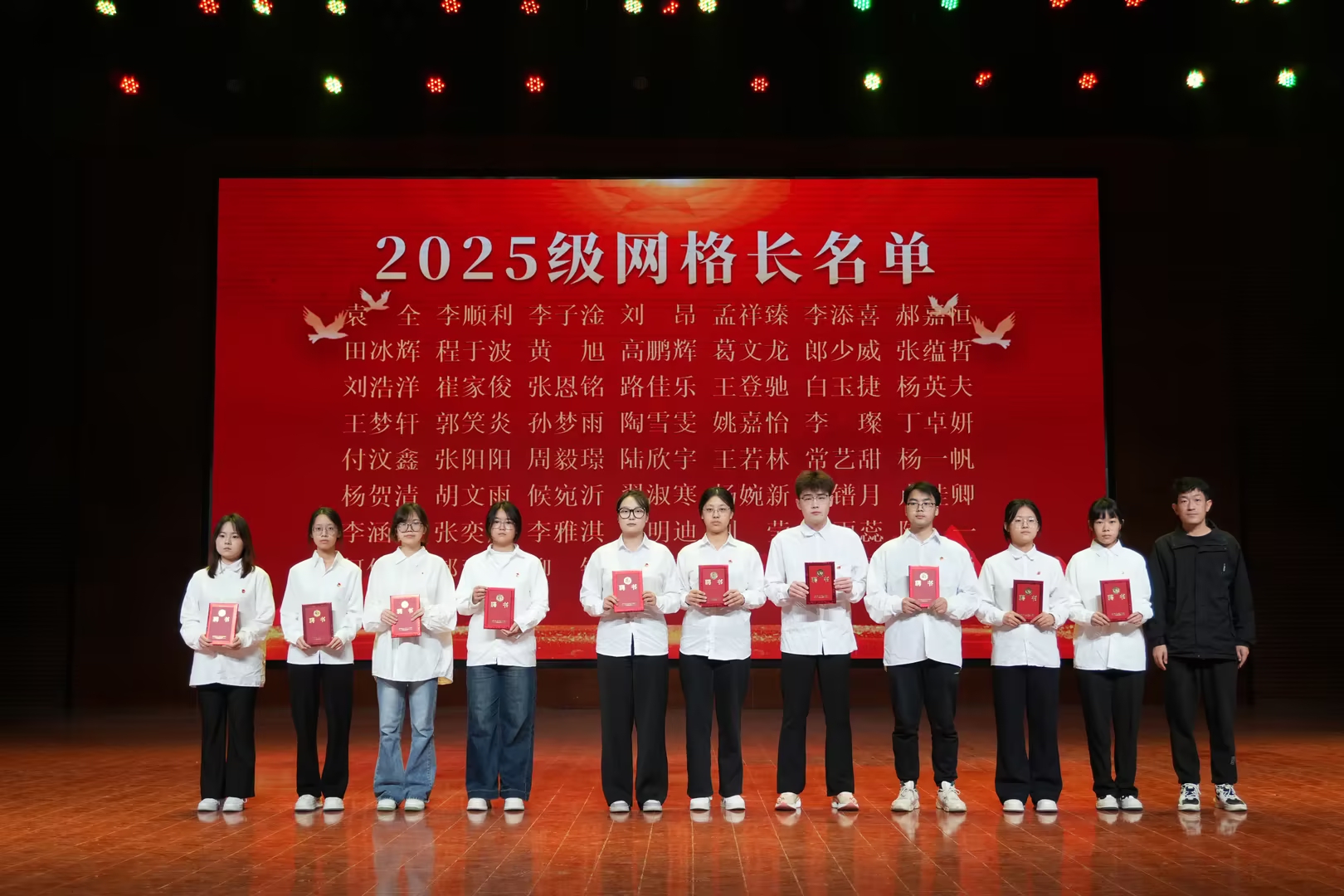 为加强学生干部队伍建设,充分发挥团组织的思想引领与育人功能,近日,崇德书院在闻德礼堂隆重举办2025-2026学年学生干部聘任仪式。崇德书院党委书记马苏娟,党委副书记窦倩,团总支书记张晟烨,2024级、2025级本科辅导员以及书院各学生组织全体干部、班委和网格长代表共同参加仪式。