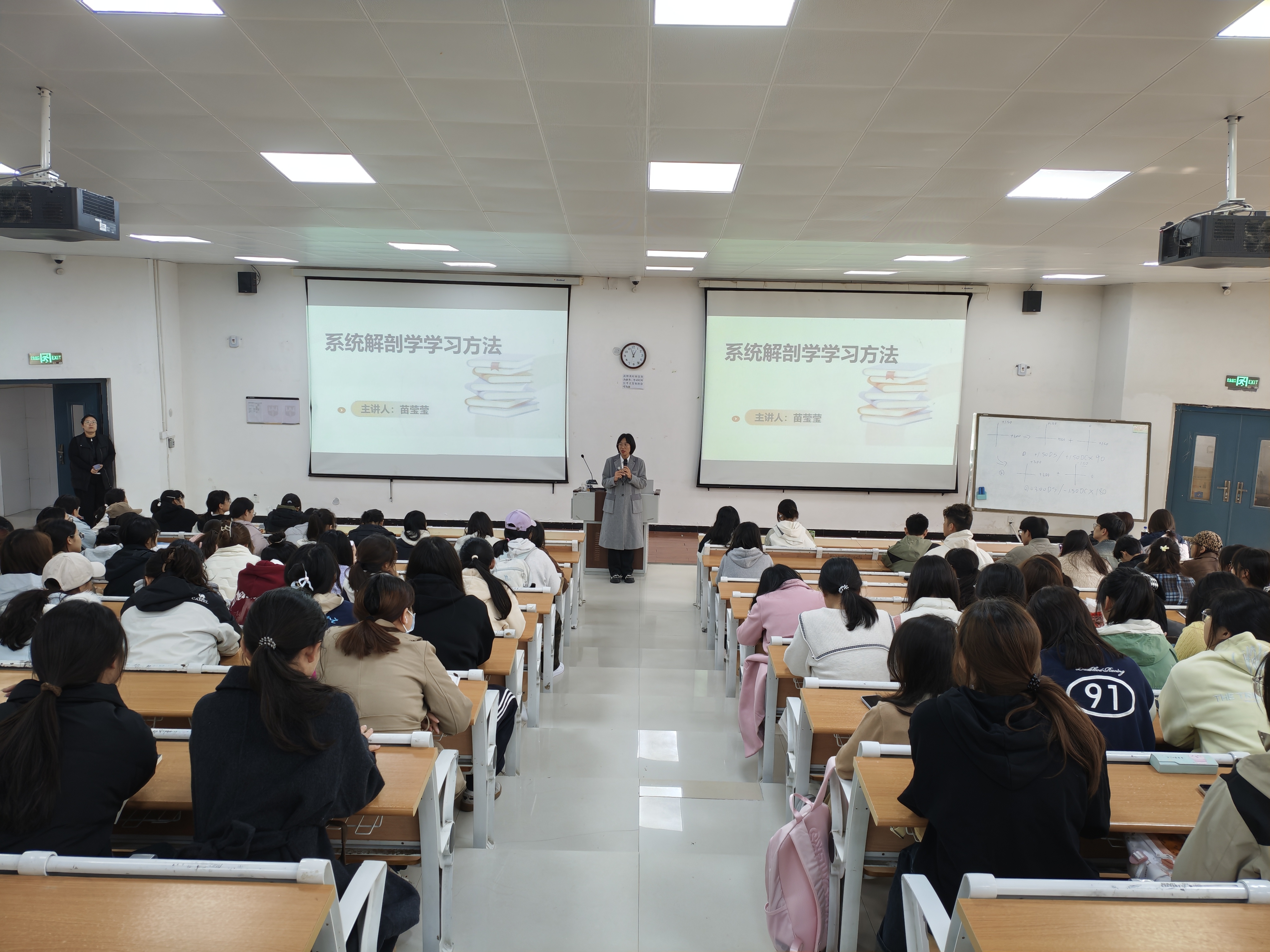 面对新生在专业基础课程中普遍存在的学习困惑,11月5日,基础医学院常务副院长苗莹莹为2025级护理学、医学检验技术专业600余名新生带来了《系统解剖学学习方法》专题讲座。她从预习、上课、复习三阶段入手,明晰各环节学习重点,并提出了“联系位置形态功能”“运用思维导图”“结合临床案例”等极具操作性的学习策略。