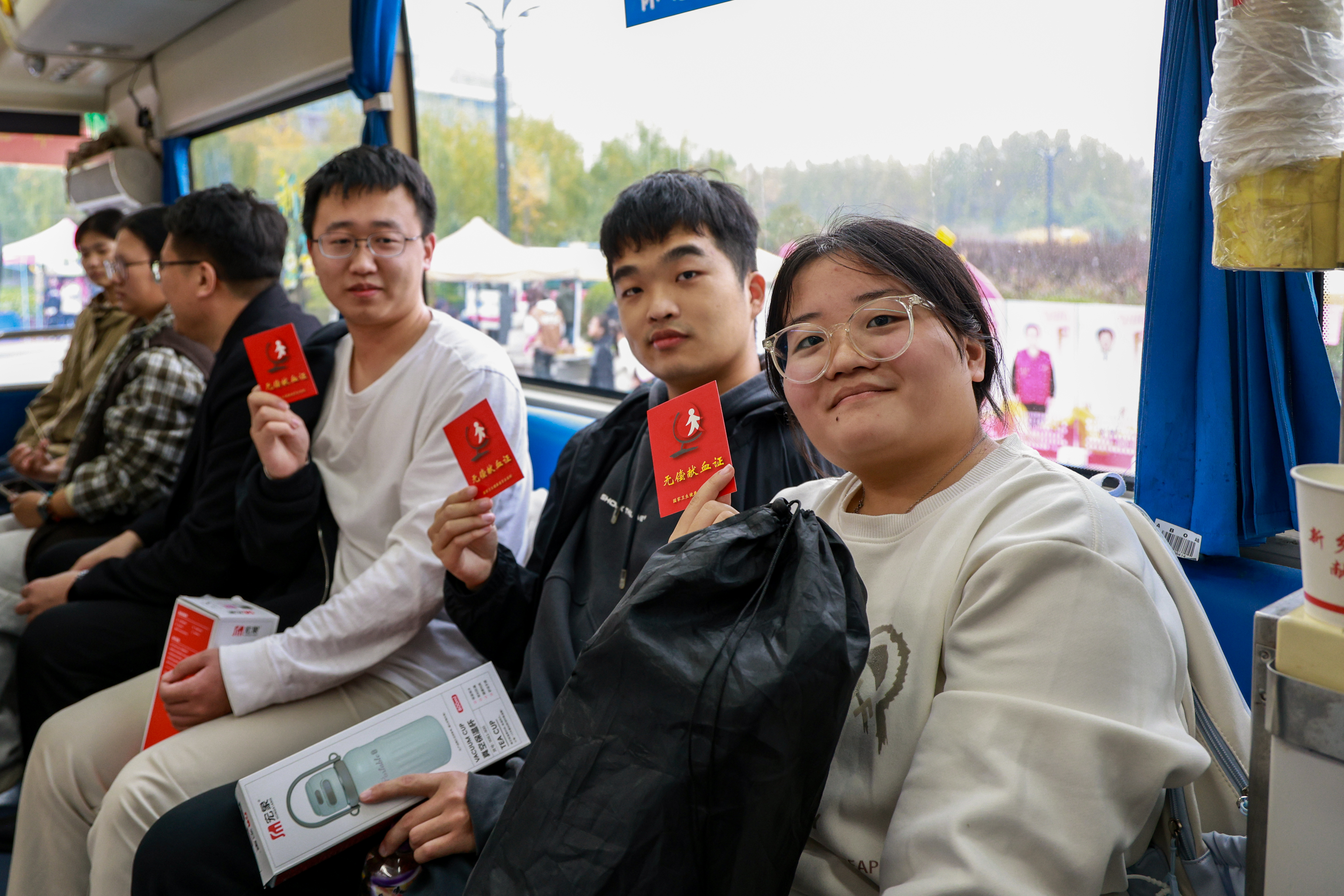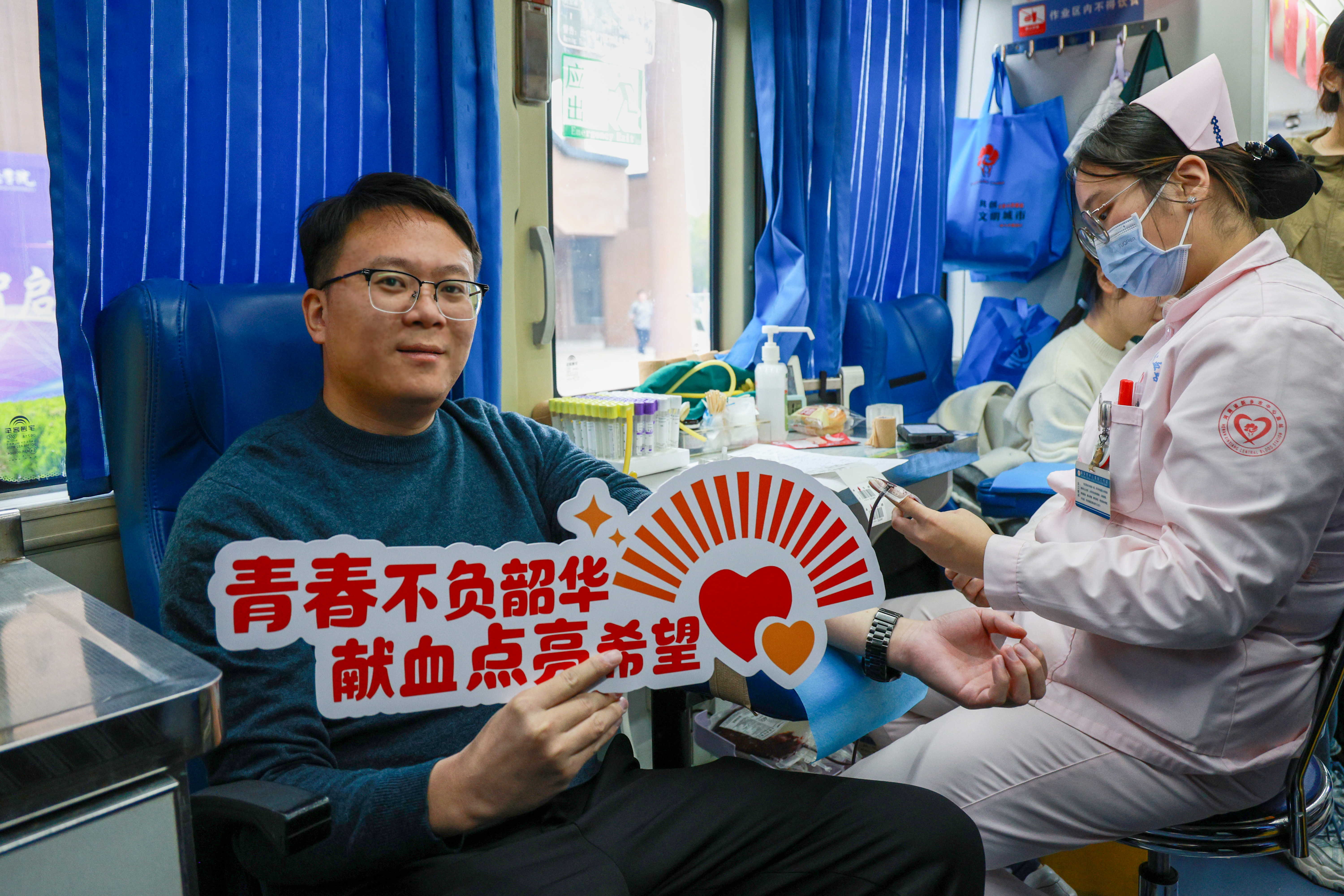 宣讲环节结束后,报告厅外的互动体验区迅速成为校园热点。同学们踊跃参与各项特色活动:“献血100个理由”留言板前,学子们提笔疾书,“为了陌生人的生命续航”“用青春热血书写担当”等真挚话语,很快铺满了整块展板;主题拍照打卡点前,学子们手持“为爱挽袖 青春无悔”“热血滚烫 生命至上”等手牌,摆出自信的姿势,相机快门声不断,定格下一张张洋溢着善意的青春笑脸。