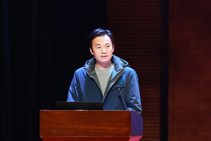 智能医学工程学院院长韩玉民代表院系发表讲话。他回顾了学校在科创育人领域的探索与成果,从前期科研双选会的精准对接,到日常科创指导的持续发力,再到今年9月我校学子在第七届全国大学生智能技术应用大赛中斩获佳绩,一系列实践充分激发了学生的科创热情,切实提升了学生的科研能力。针对参会学生,他提出了三点期望:一是心有鸿鹄志,行稳致远路,珍惜机会,明确目标,脚踏实地地积累知识;二是善思敢破局,磨砺真本领,保持探索精神,巩固基础,勇于尝试新方法;三是守正勇创新,同心向未来,加强合作,突破学科界限,在服务中实现自我价值,用医学守护生命。