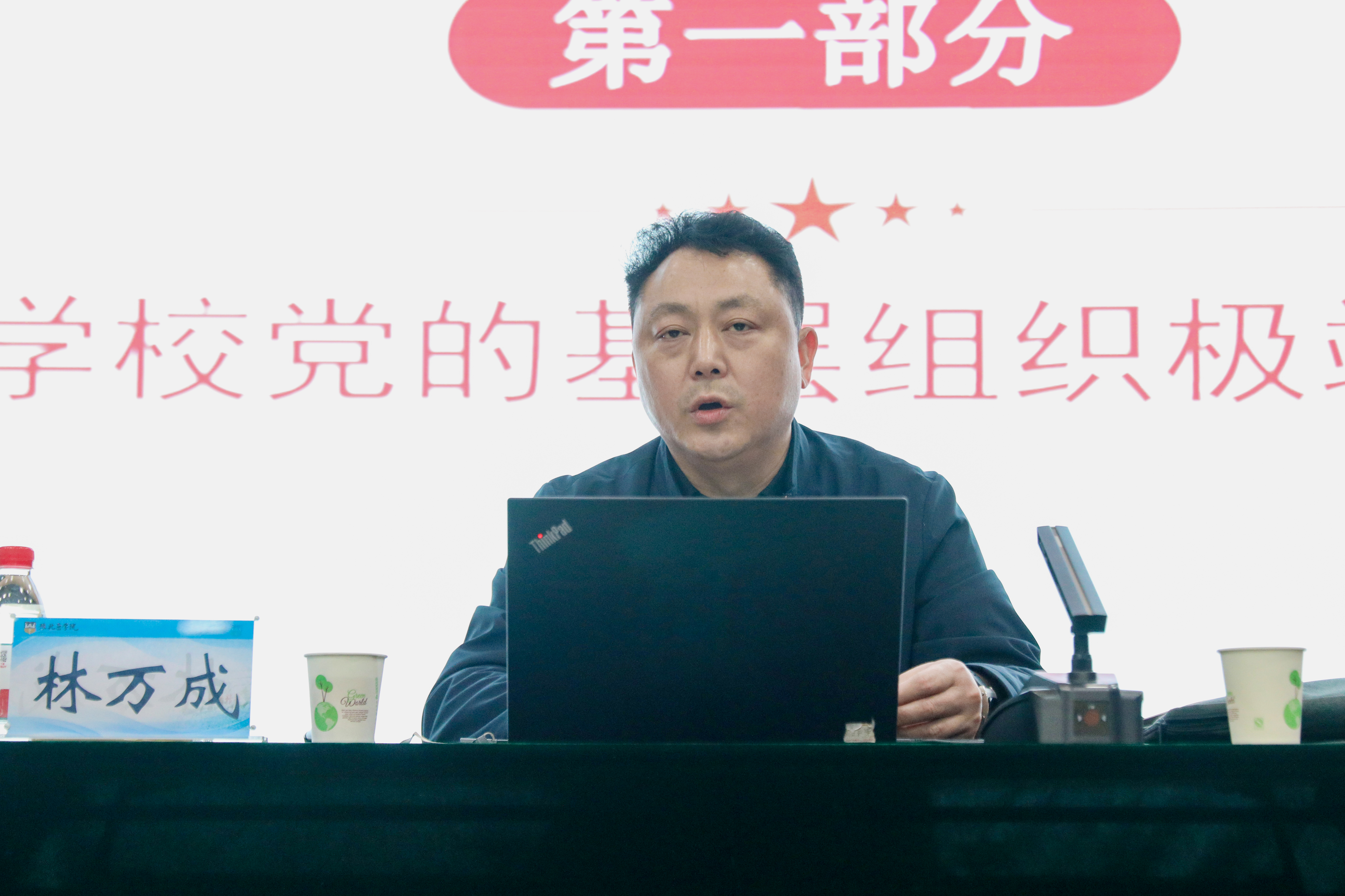 下午,河南财经政法大学党委巡察办副主任、历史学博士、马克思主义理论博士后、副教授林万成应邀作题为《加强学校基层党组织建设,以高质量党建引领推动事业高质量发展》的专题辅导。林万成围绕学校基层党组织建设的极端重要性、建强基层组织的路径方法、创建示范性基层党组织的实践要点等方面,系统阐释了新时代高校党建工作的理论逻辑与实践路径。他结合多年党建研究和政策实践,深入解读了基层党组织在政治引领、组织保障、推动发展等方面的关键作用,为参训人员提供了丰富的理论指导和实操借鉴。