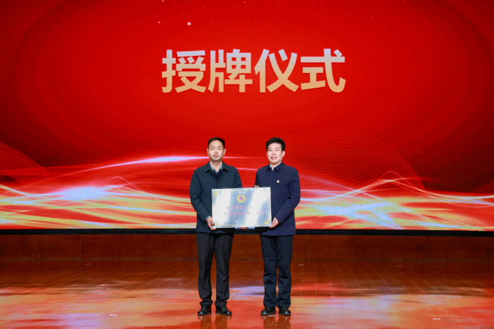 在全体与会嘉宾的共同见证下,新乡市红十字会孙涛科常务副会长向我校授予“新乡市红十字会应急救护教育培训基地”牌匾,李庚书记代表学校接牌。