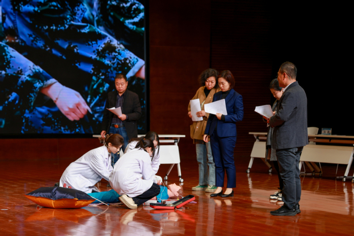 授牌仪式结束后,备受瞩目的第一届“千人急救”大赛决赛正式拉开帷幕。本次决赛评委团阵容强大,由天津大学卫生应急学院科普培训基地主任辛立民、河南省人民医院急诊科护士长汤文文、郑州市中心医院急诊科专业基地教学主任孙捷、焦作市人民医院急诊科副主任范志强、郑州市第七人民医院全科住培基地教学主任白杨等资深专家组成。