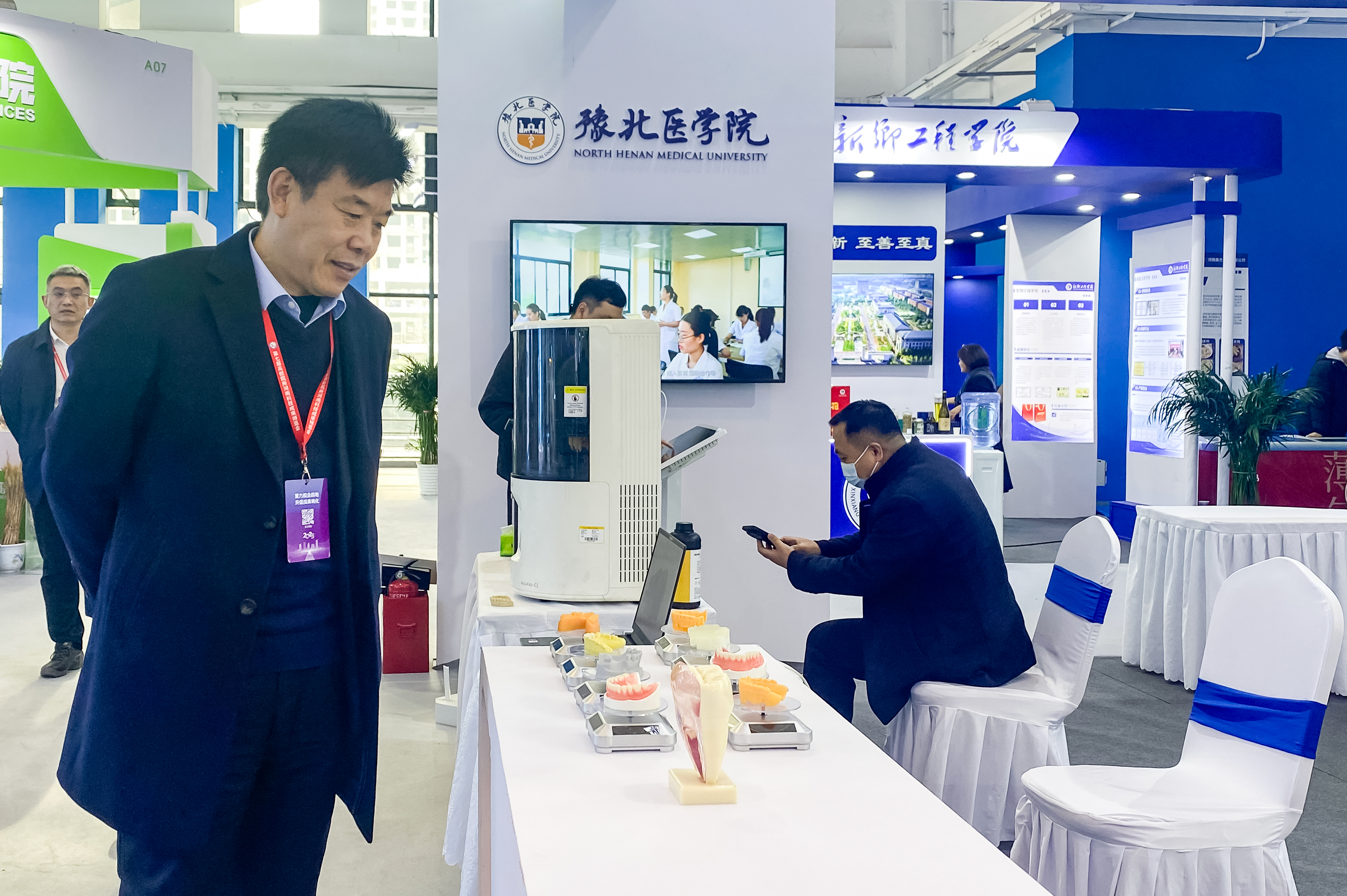 “牙齿缺损如何实现快速精准修复?”“特殊鞋垫怎样完美贴合足部形态?”11月23-24日在第七届高校院所河南科技成果博览会现场,我校展区的前沿科技成果不仅生动回应了观展学生的好奇提问,更以扎实的产学研融合成果,彰显了医学科技创新与健康产业发展的深度融合,成为展会中备受瞩目的亮点。