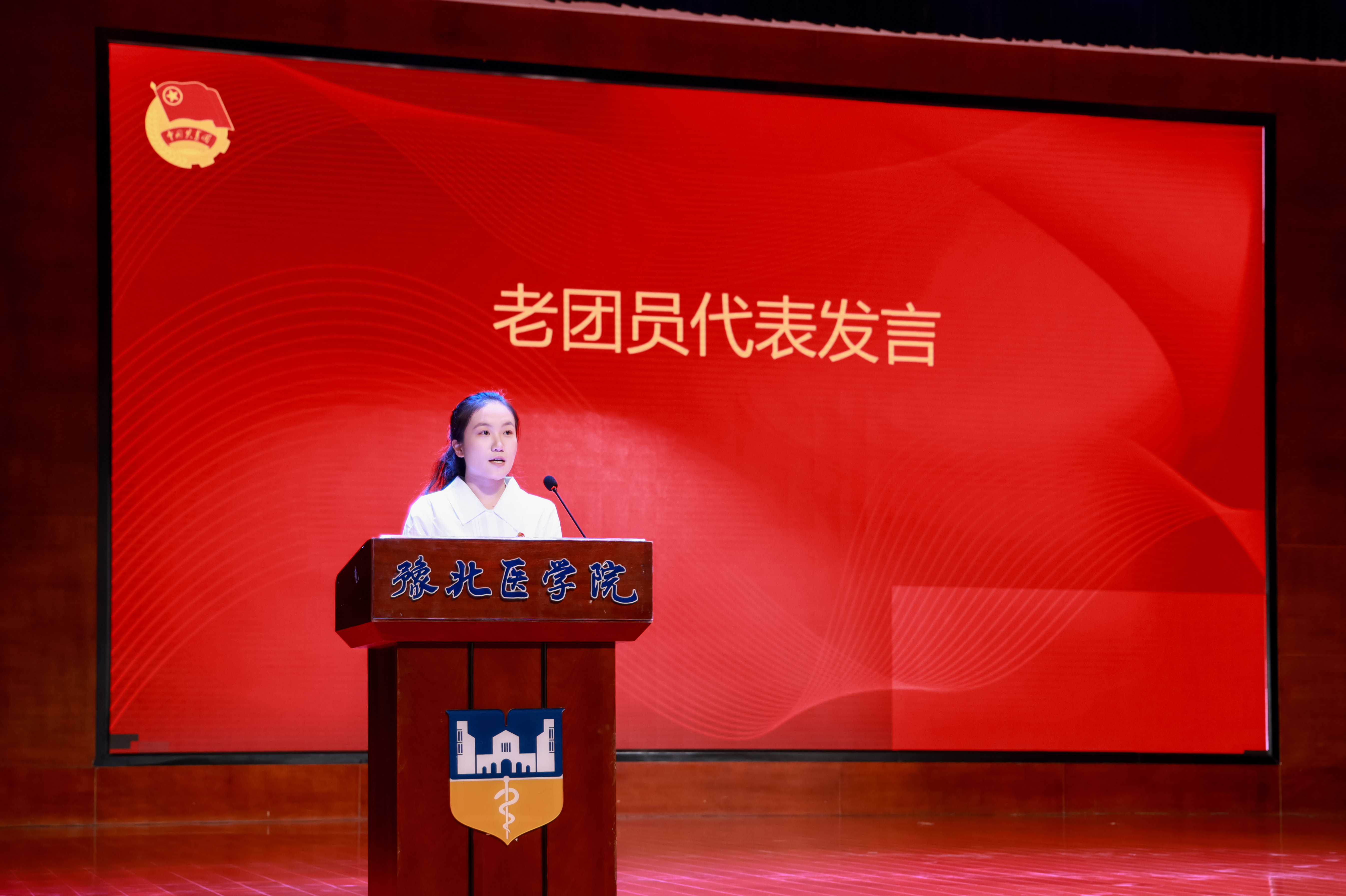 新团员代表张明雨结合医学生身份,表达了将团徽荣光与医学使命紧密结合的决心,表示将以精湛医术守护生命,以高尚医德温暖社会。老团员代表许莫浛结合自身成长经历,勉励新团员坚定信仰、精进学业、严守纪律,把“为共产主义事业而奋斗”的誓言融入医学学习的日常实践。