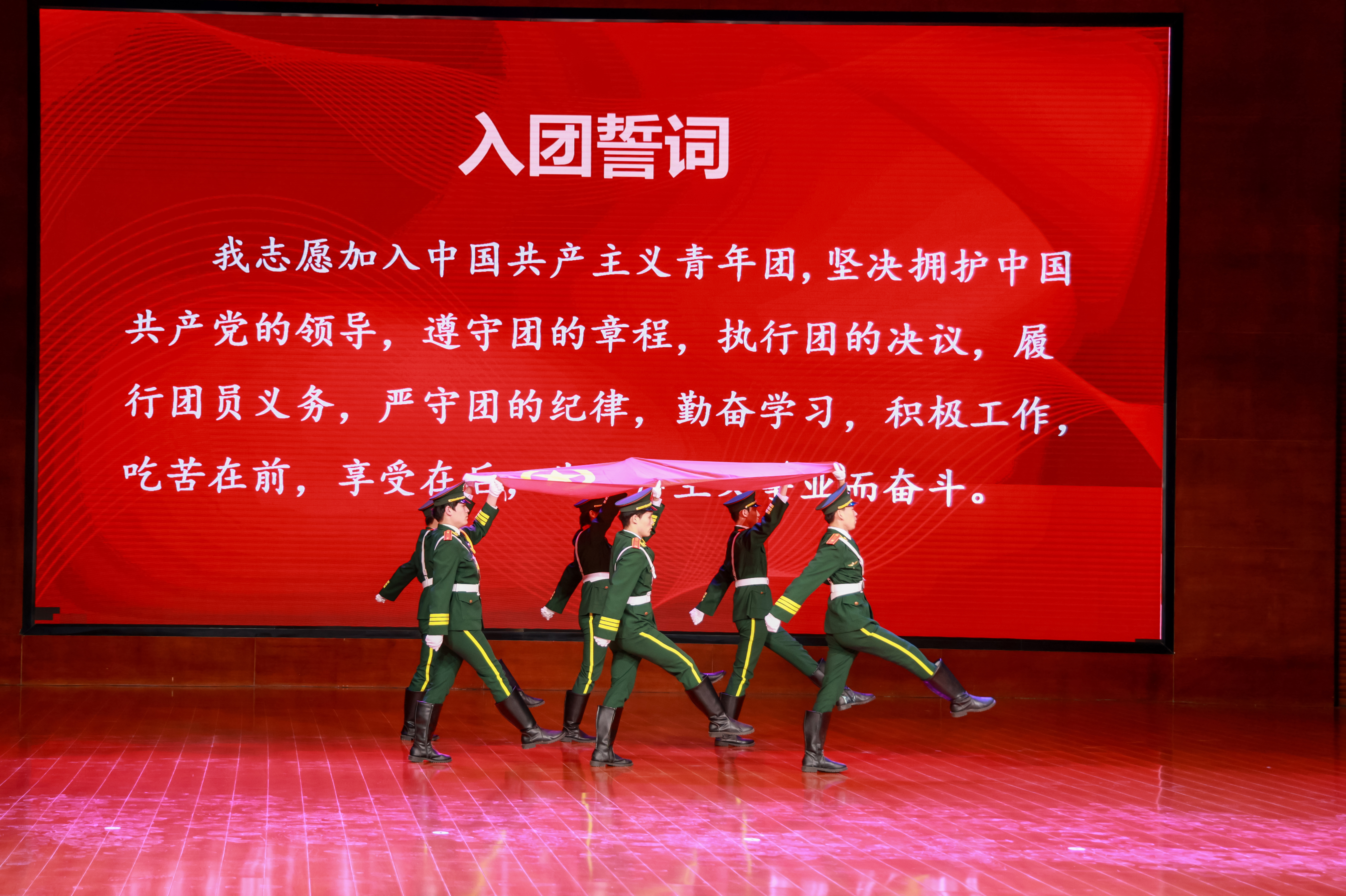 “我志愿加入中国共产主义青年团……”在张帆的领誓下,全体新团员面向团旗庄严宣誓。铿锵有力的誓言,彰显了青年学子对共青团组织的无限向往和对共产主义事业的坚定信念。