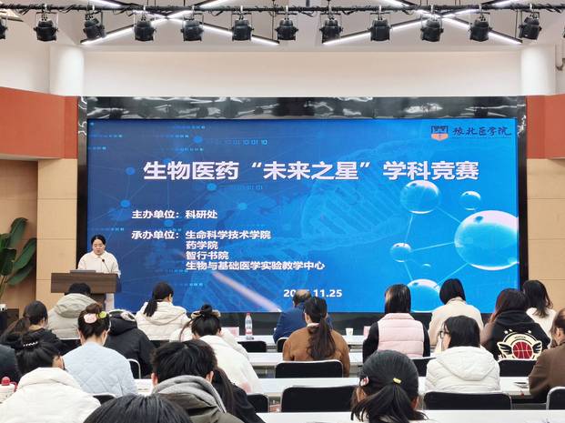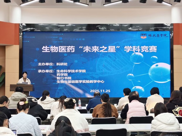 为深化创新创业教育改革,激发大学生投身生命科学研究的兴趣与潜能,培养他们的创新意识、实践能力和团队精神,11月25日,豫北医学院科技活动月系列活动之“生物医药‘未来之星’学科竞赛”在智行书院多功能大厅圆满落下帷幕。本次竞赛由豫北医学院科研处主办,生命科学技术学院、药学院、生物与基础教学中心及智行书院联合承办。