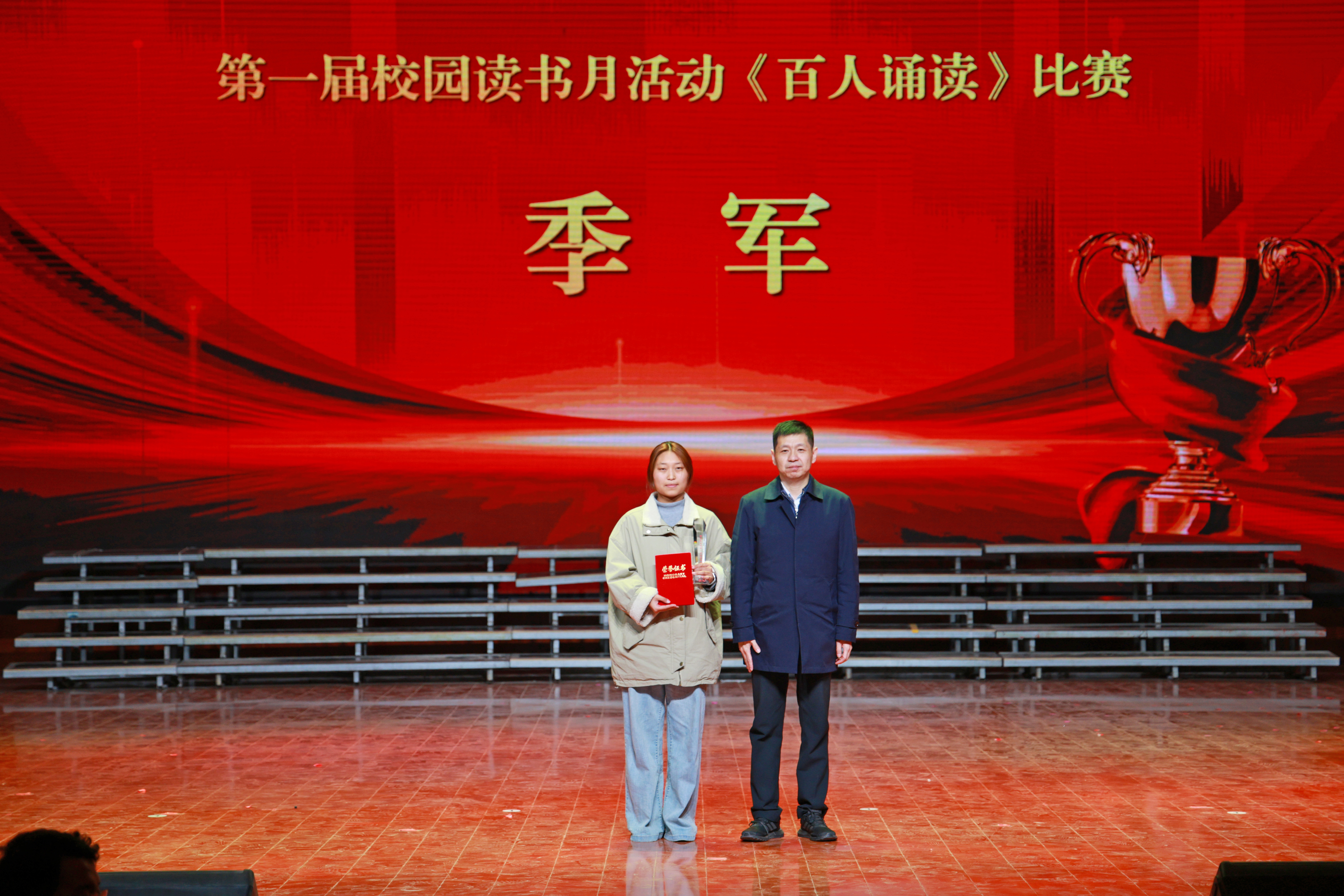 此次活动在庄严的国歌声中拉开帷幕,分为开场表演、《百人诵读》比赛展演第一届校园读书月活动闭幕式三个篇章