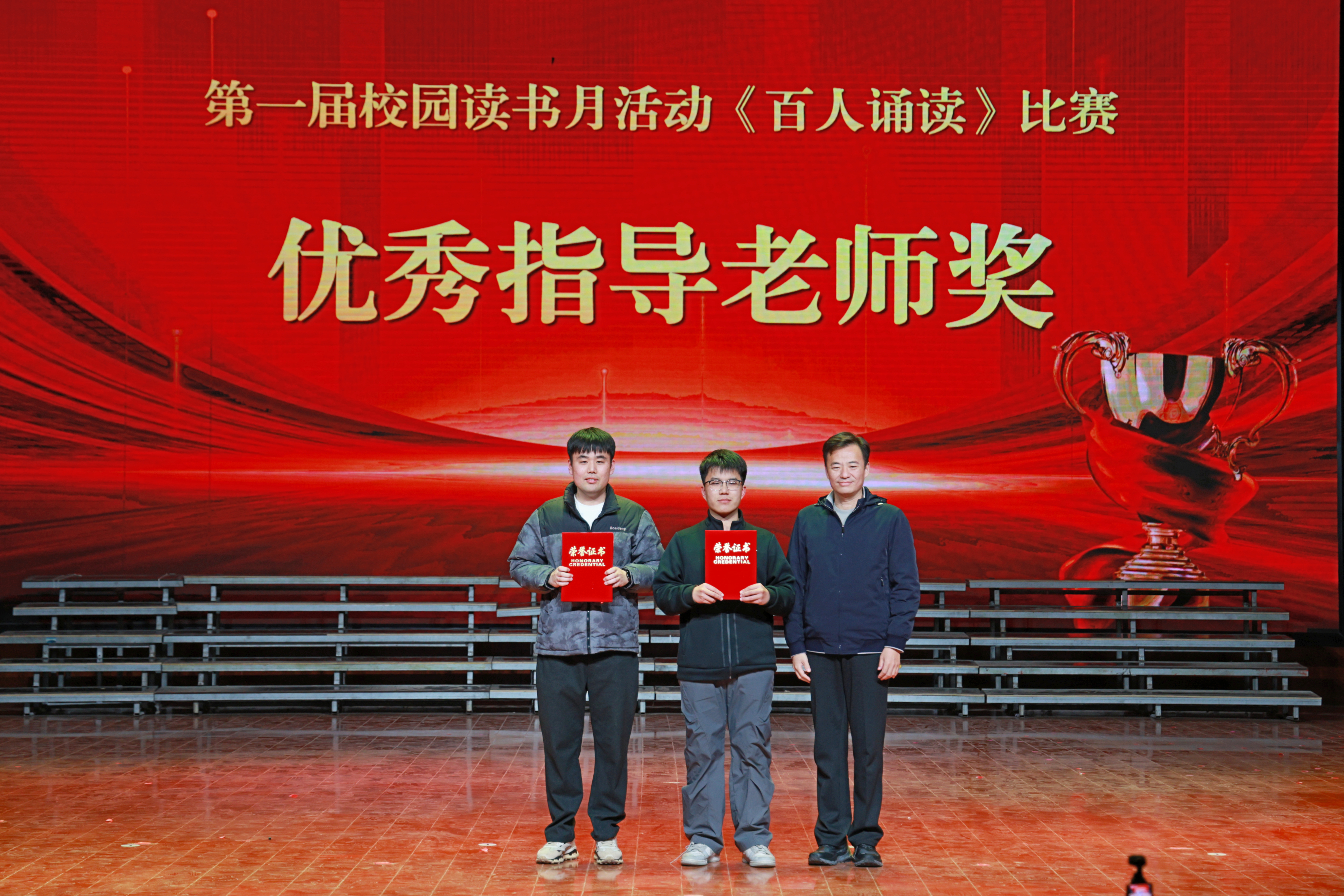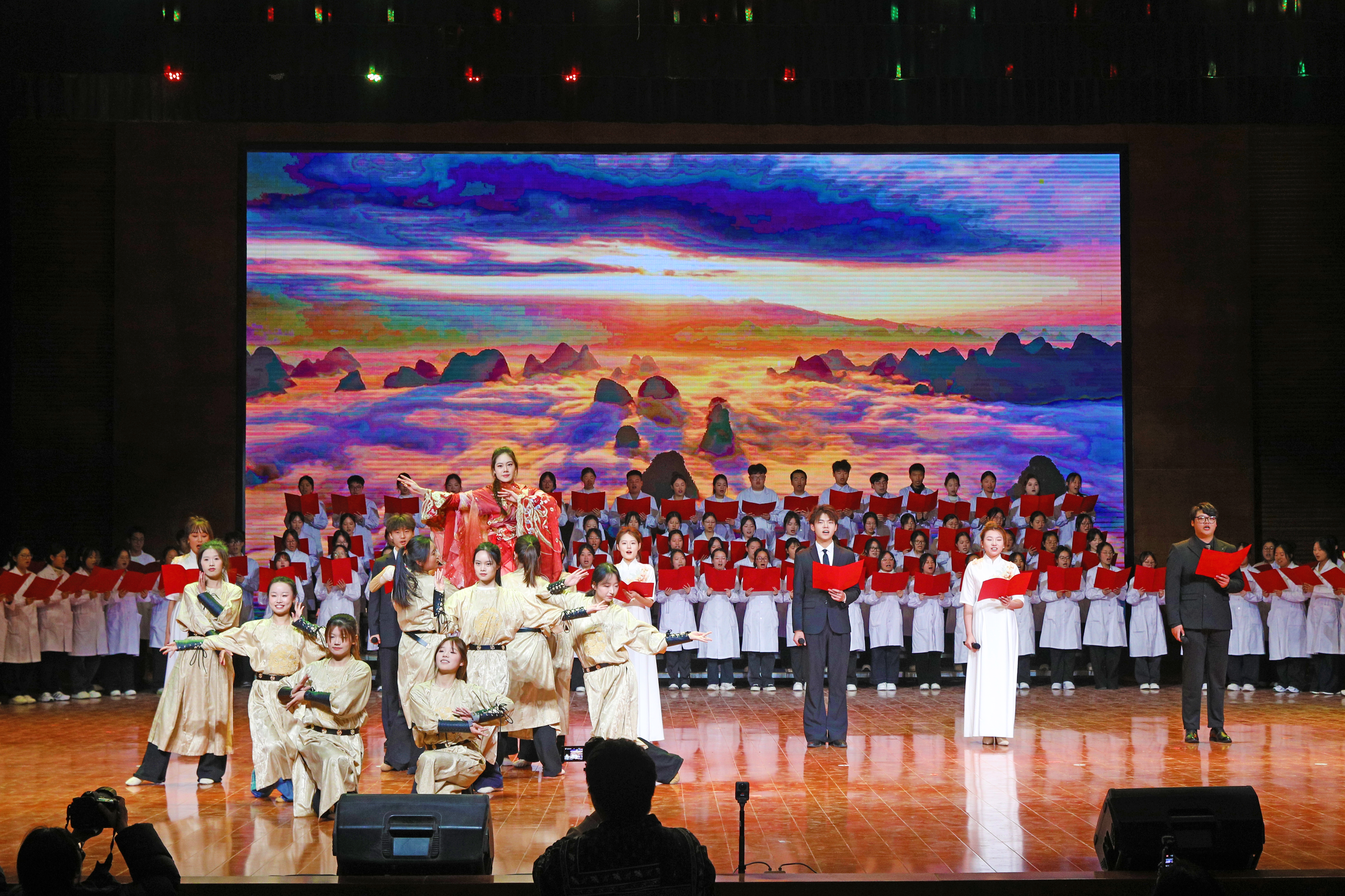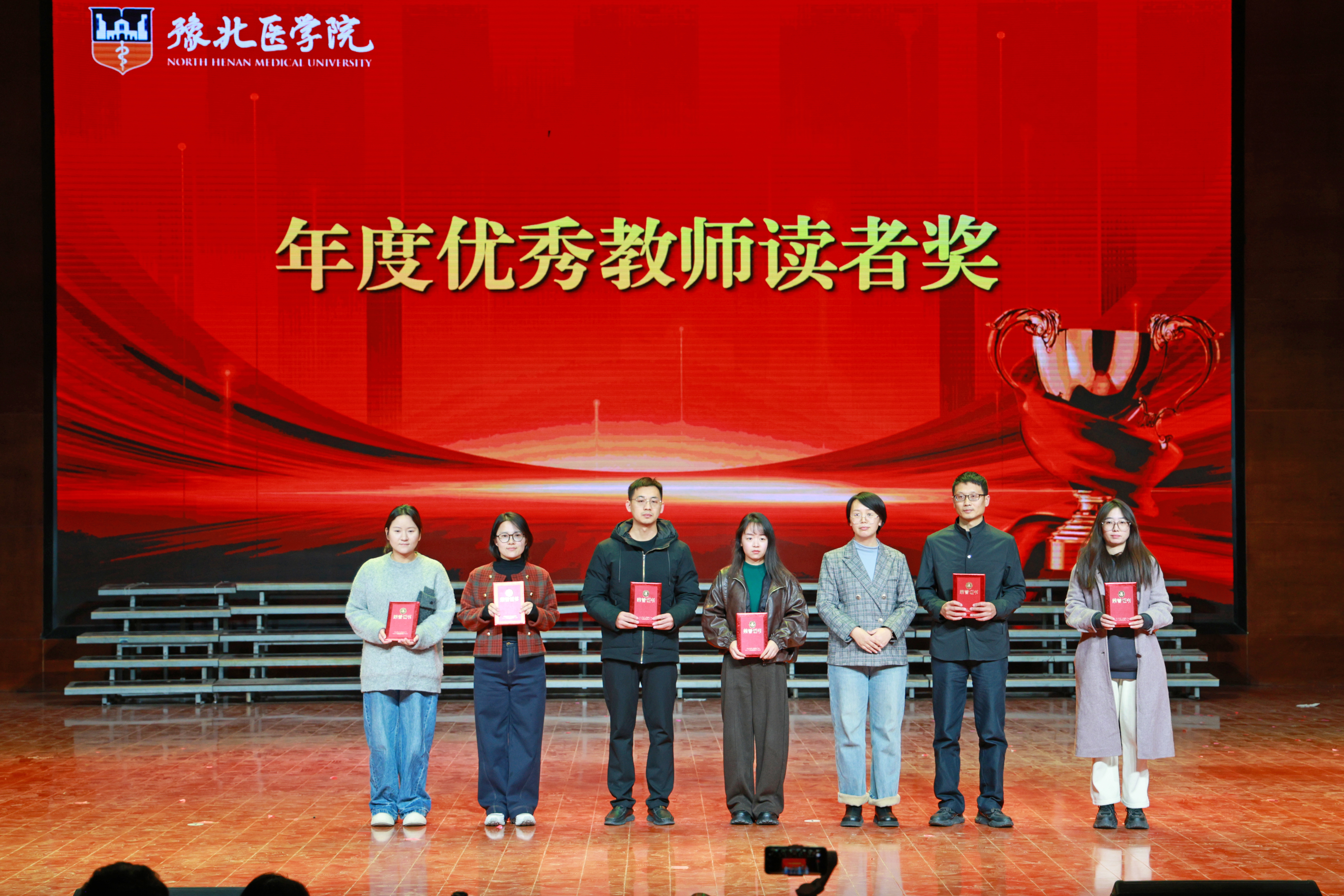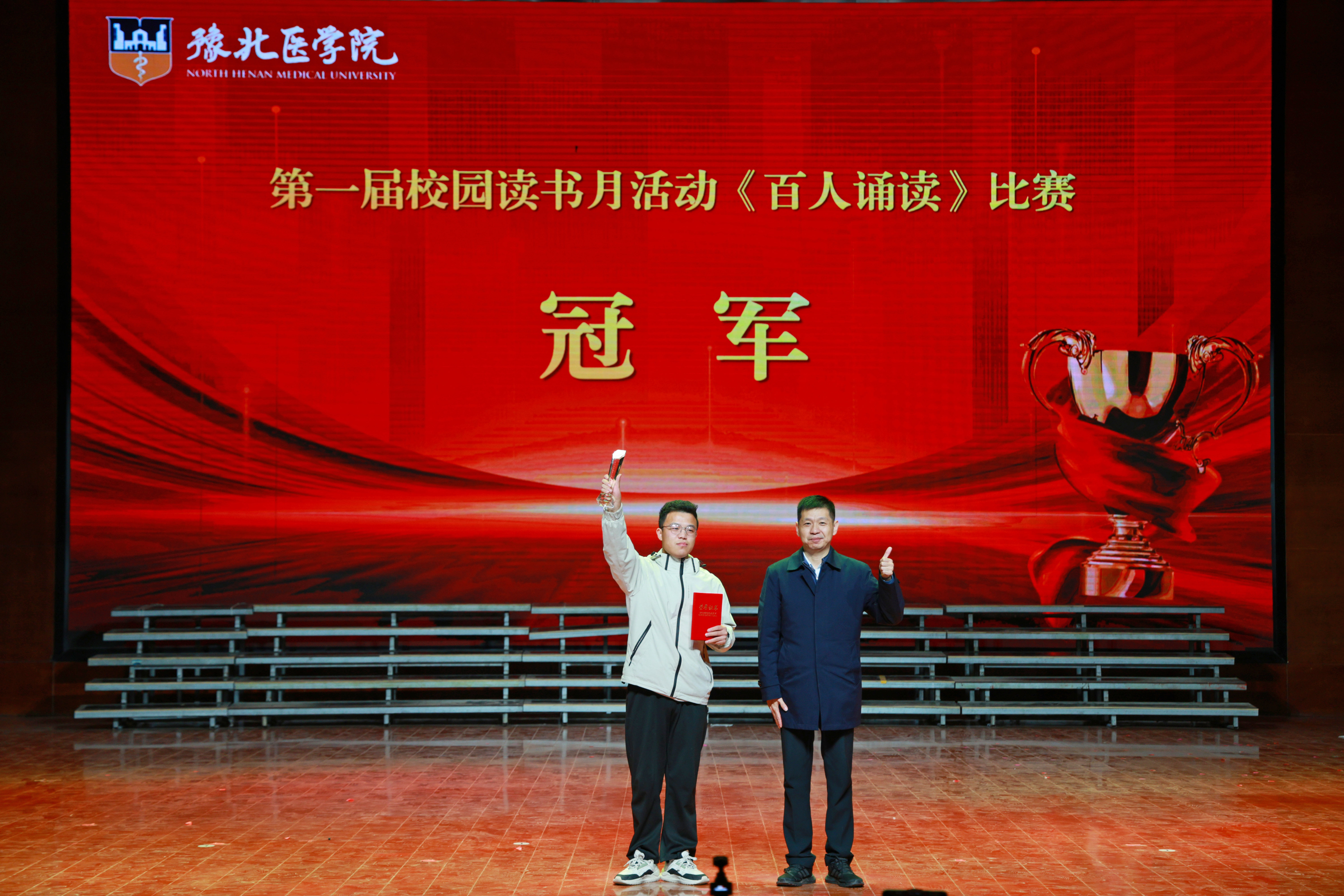 文脉延绵薪火传,书香育人润无声。为深化书香校园建设,厚植师生文化自信,引导青年在阅读中汲取成长力量赓续中华文脉,图书馆于10月29日起举办了为期一个月“墨卷含香承雅韵,书声明志赴新程”为主题的豫北医学院第一届校园读书月活动。11月27日晚,《百人诵读》比赛展演暨校园读书月活动闭幕式在闻德礼堂举行。我校副校长马波、顾欢莅临现场党委办公室主任、机关党委书记孙佳佳董事会办公室主任、校长办公室主任、发展规划处处长马素娟党委宣传部部长孙浩党委教师工作部副部长、人事处副处长、目标考核办公室副主任周瑞丹,党委学生工作部副部长、学生处副处长王林翮担任评委,各书院、院(部)负责人千余师生代表齐聚一堂,共同见证这场文化盛宴的圆满落幕。