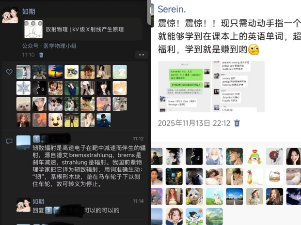 “知识风暴,一触即发”构建线上线下融合的学习共同体。以小班为单位,学生每日20点在班级群分享专业知识点、英语词汇、时政热点等“知识微分享”,学习委员按学号顺序组织讨论,形成“每日一学、全员参与”的学习习惯。在此基础上,书院评选出10个“知识风暴”班级、21名“知识风暴”达人,其中“达人”通过朋友圈分享知识点,单条最高获赞超109次,实现“学习—分享—传播”的良性循环。
