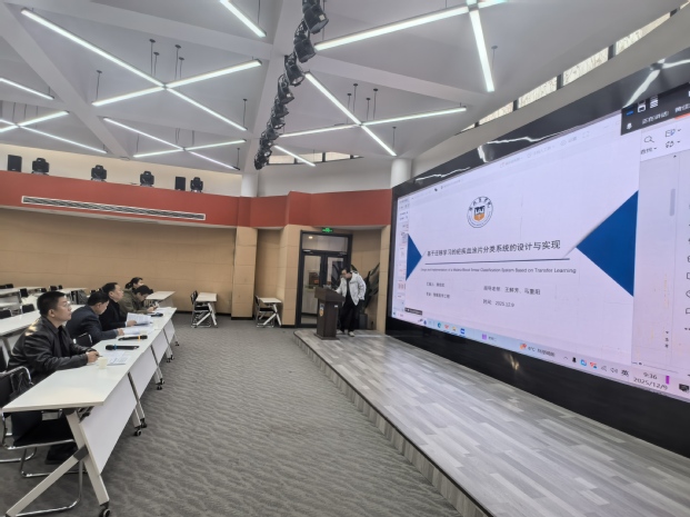 巡视过程中,白国强认真听取了部分学生的开题汇报,仔细翻阅了相关开题材料,并对答辩组织工作和同学们的总体表现给予了充分肯定。他鼓励同学们要敢于探索,同时注重研究的扎实性与规范性。他指出,毕业设计是本科培养的关键环节,开题质量直接影响后续研究的推进与成果水平。他强调,同学们应进一步强化问题意识,聚焦医学与智能融合的实际需求,在技术路径上要注重可行性与创新性的平衡,在研究方法上要体现严谨性和科学性。同时,他也对指导教师团队提出要求,希望导师们持续加强对学生的过程指导,尤其是在课题设计与技术实现方面给予更多支持,共同保障毕业设计工作高质量推进。
