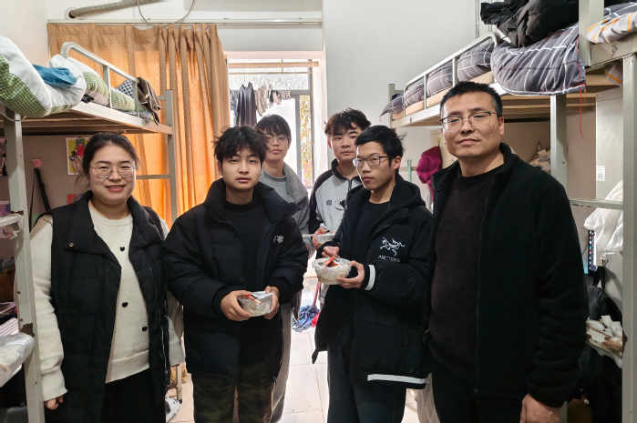 活动现场,师生们一边动手体验传统手工艺的制作,一边轻声交谈、共叙家常。老师们关切地询问同学们的期末备考情况和日常生活,同学们也分享着家乡的冬至习俗与复习点滴。笑语声中,节日的氛围愈发浓厚,师生的距离悄然拉近。来自不同国家的国际学生也兴致勃勃地融入其中,体验包饺子、试穿汉服,深刻感受到了中华传统文化的独特魅力。活动后,书院特意将这份温暖延伸至宿舍。辅导员们带着刚煮好、热气腾腾的饺子走访学生寝室,为未能到场的同学送上惊喜与关怀,让节日的暖意覆盖整个书院。