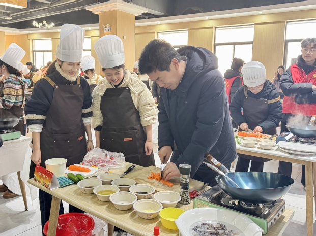 天时人事日相催,烟火校园味正浓。为深入贯彻劳动教育精神,让劳动之美浸润校园,以“食”为媒搭建师生互动桥梁,彰显医学院校专业特色,12月26日,由校工会、智行书院、后勤处联合主办,机关工会、药食同源养生美食俱乐部承办的“‘豫’见美味 厨艺争锋”豫北医学院第一届“豫厨争霸”厨艺大赛在平原校区东苑餐厅二楼热力开赛。校党委书记李庚、校长李琼、常务副校长秦国亮、党委副书记杨国平、副校长王志凯等领导嘉宾亲临现场观摩指导。来自学生组、教职工组及师生协同组共32支参赛团队同台竞技,让医者仁心与生活匠心在烟火氤氲中碰撞交融。