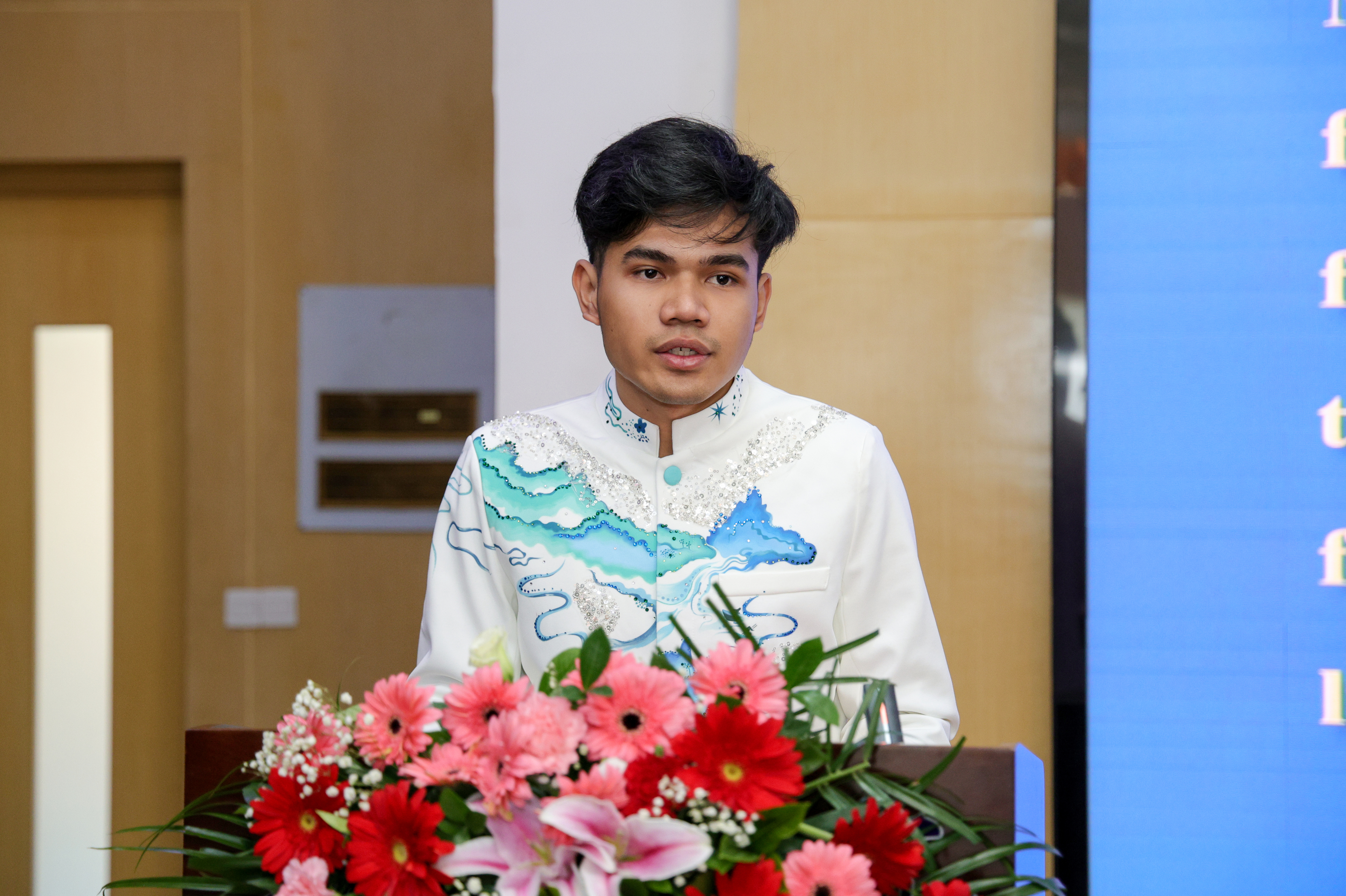 来自印度尼西亚的2025级临床医学专业新生许瑞范作为国际新生代表发言。他分享了入学后在学校关怀下迅速融入新环境的感受,并讲述了自己因见证医疗资源不足而立志从医的初心。他表示,全体国际新生将以入学教育为起点,刻苦钻研医学知识,积极参与文化交流,当好文明互鉴的使者,牢记“健康所系,性命相托”的誓言,努力成长为具有国际视野与扎实专业能力的医学人才。