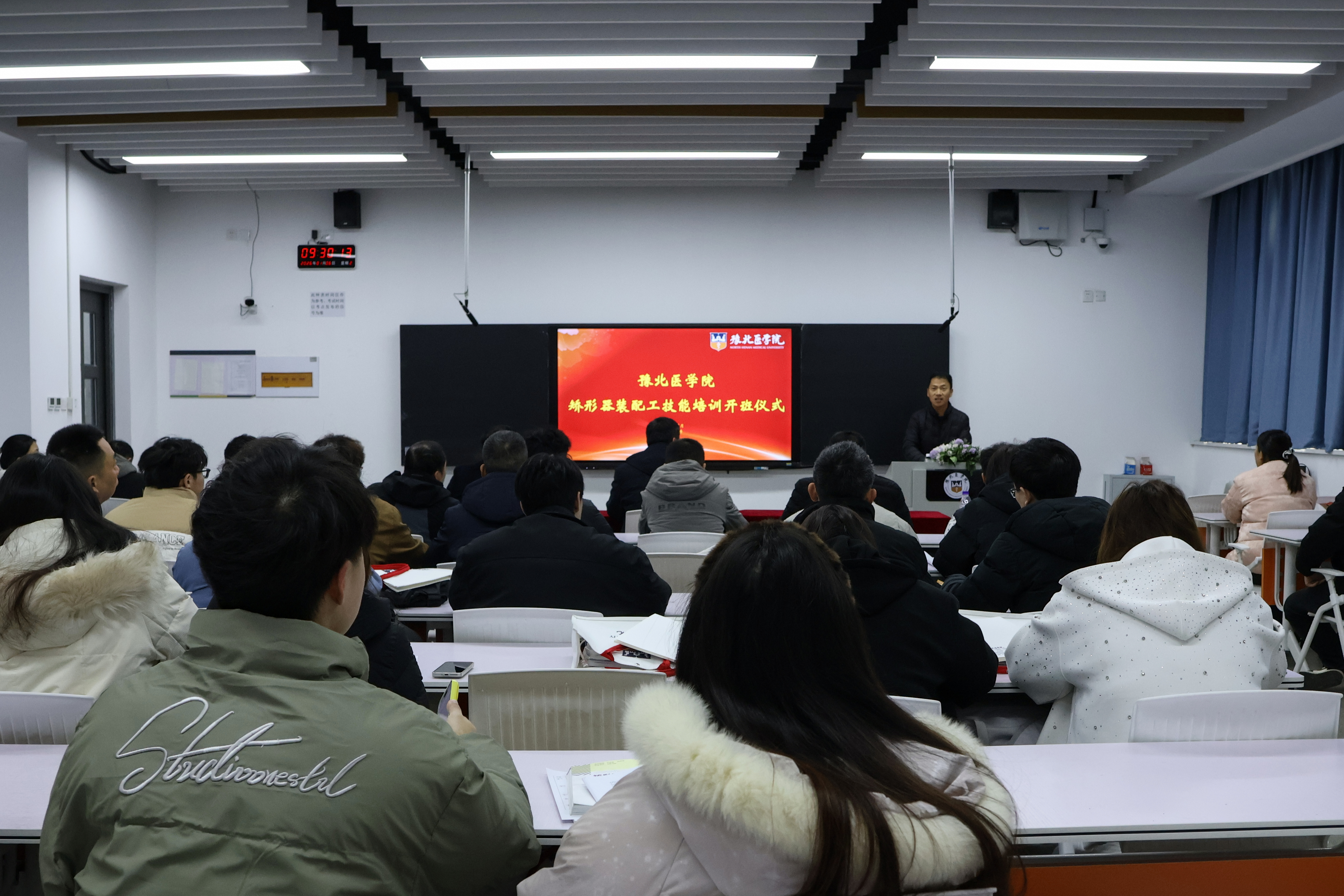 1月6日,豫北医学院首期矫形器装配工(中级)培训在平原校区弘学楼正式开班,本次培训由我校继续教育学院与康复医学院联合开展。副校长薛宏出席开班仪式并致辞,康复医学院院长袁志垚讲话并明确培训要求,开班仪式由继续教育学院副院长吉根伟主持。