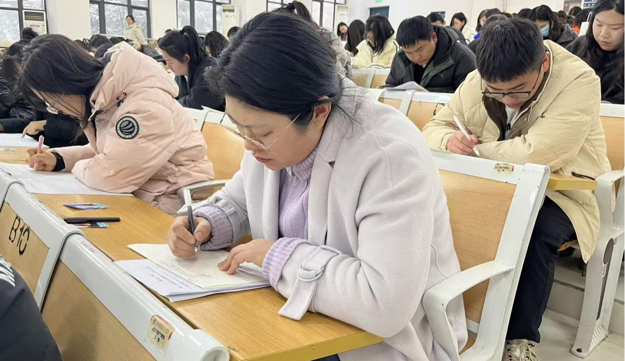 12月12日下午,理论笔试在谨学楼紧张而有序地进行。作为大赛的重要环节,笔试严格对标河南省辅导员素质能力大赛标准,内容聚焦习近平新时代中国特色社会主义思想、全国教育大会精神、党和国家关于高校党建与思想政治工作的重要会议以及辅导员九大工作职责等,同时融入《河南省本科高校学生管理工作分时、分类操作指南》等业务知识和数智时代思政工作热点议题,重点考察辅导员的政治站位、思想政治理论水平和实践业务能力。考场上,全体辅导员严格遵守考试纪律,专注审题、认真作答,充分展现了我校辅导员队伍扎实的知识储备、严谨的治学态度和过硬的职业素养。