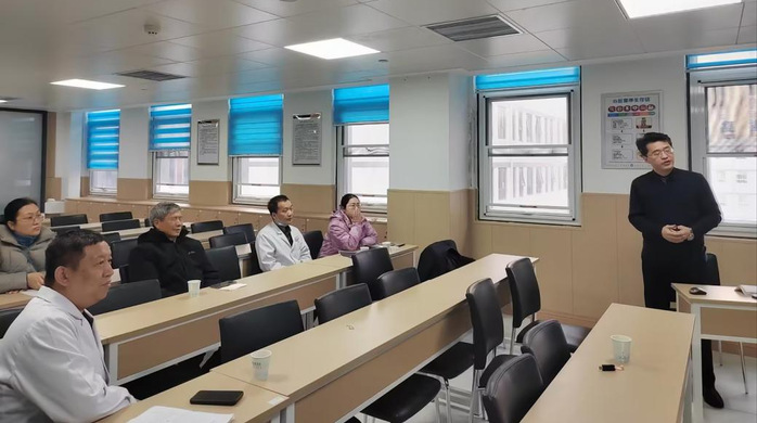 为深化医教协同机制,破解《中医学》课程理论与临床衔接难题,统一教学标准与育人导向,1月20日,临床学院路成吉教授赴附属南石临床学院,组织开展2025-2026学年第二学期《中医学》课程线上线下混合式集体备课活动。《中医学》全体教师、附属医院及各教学基地《中医学》授课教师通过“附属南石临床学院线下主会场+各教学基地线上云会场”的联动模式参会,凝聚集体智慧推动课程教学质量再升级。