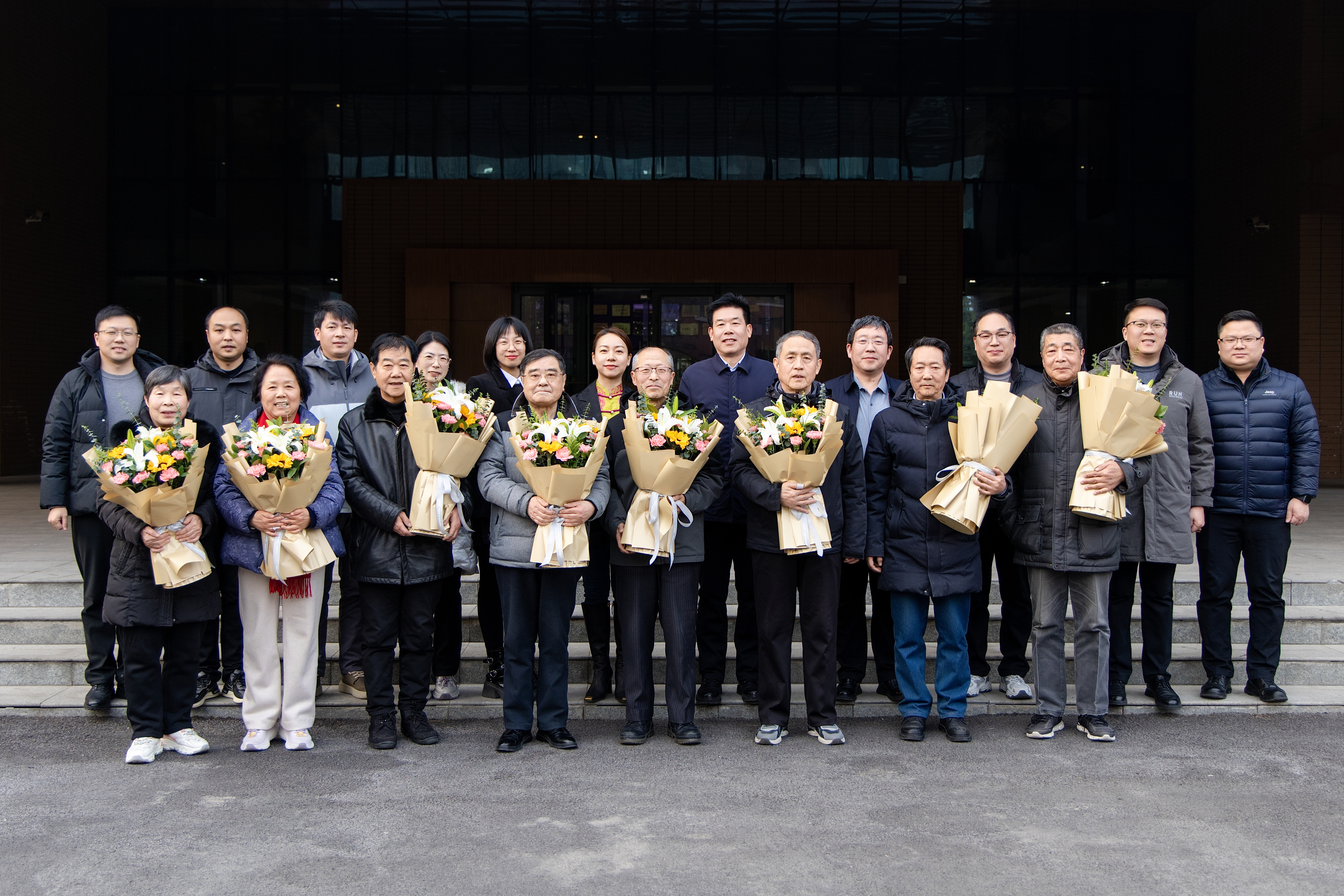 座谈会的最后,李庚、李琼、秦国亮等校领导为荣休教授代表敬献鲜花与慰问品,用一份心意传递敬意与祝福。全体与会人员共同合影,将这一温馨又光荣的时刻永久定格。