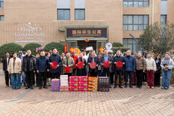 在新乡校区综合楼前,欢声笑语打破了冬日的宁静。校领导为留校的国际学生们送上了精心准备的新年大礼包,漂亮的礼盒映衬着留学生们的笑脸。“谢谢老师,祝老师们新年快乐,万事如意,马年大吉!”留学生们用略显生涩却饱含真挚的中文表达着感谢,还递上亲手绘制的新年贺卡。